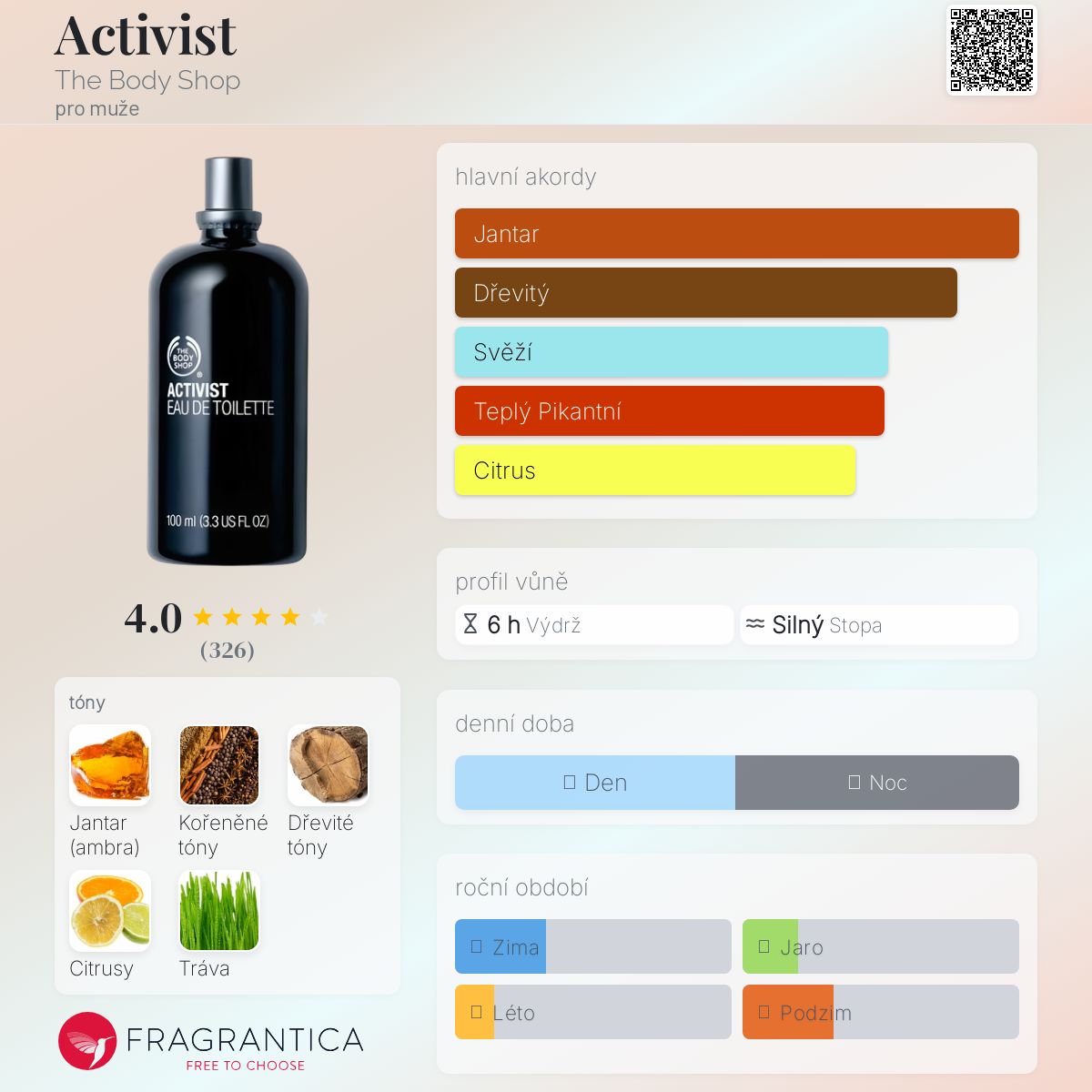 Activist podle The Body Shop je Orientální vůně pro muže. Activist byl/a uveden/a v roce 1995.