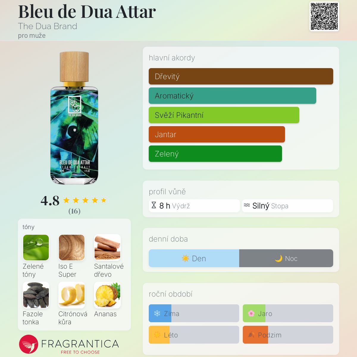 Bleu de Dua Attar podle The Dua Brand je Woody Aromatic vůně pro muže. Bleu de Dua Attar byl/a uveden/a v roce 2020.