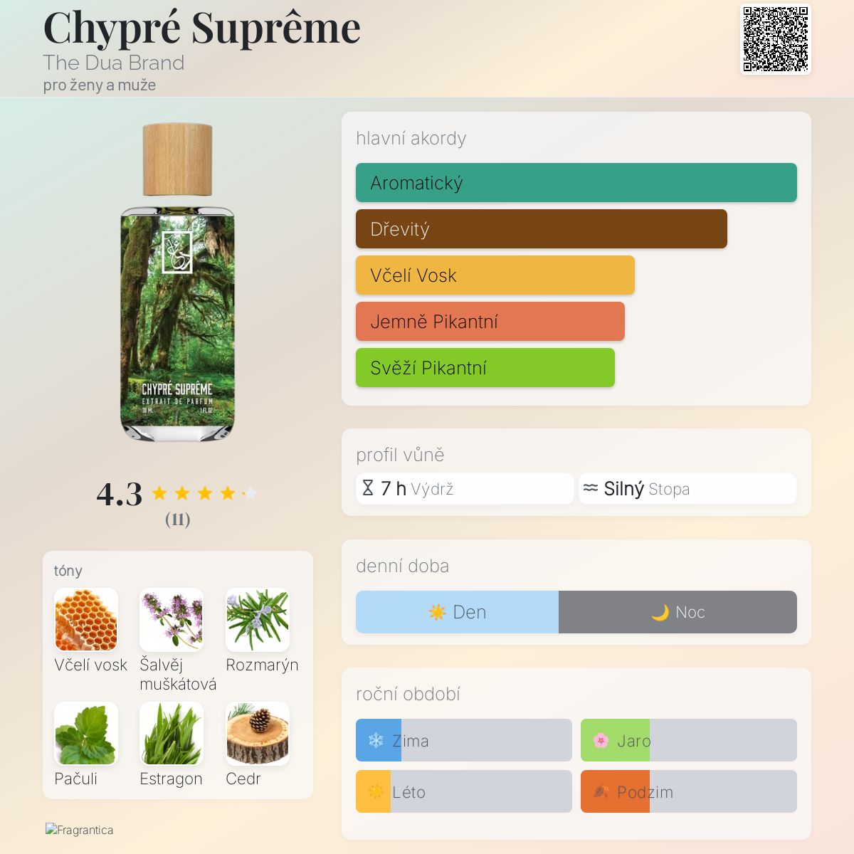 Chypré Suprême podle The Dua Brand je Dřevitá vůně pro ženy a muže. Chypré Suprême byl/a uveden/a v roce 2017.