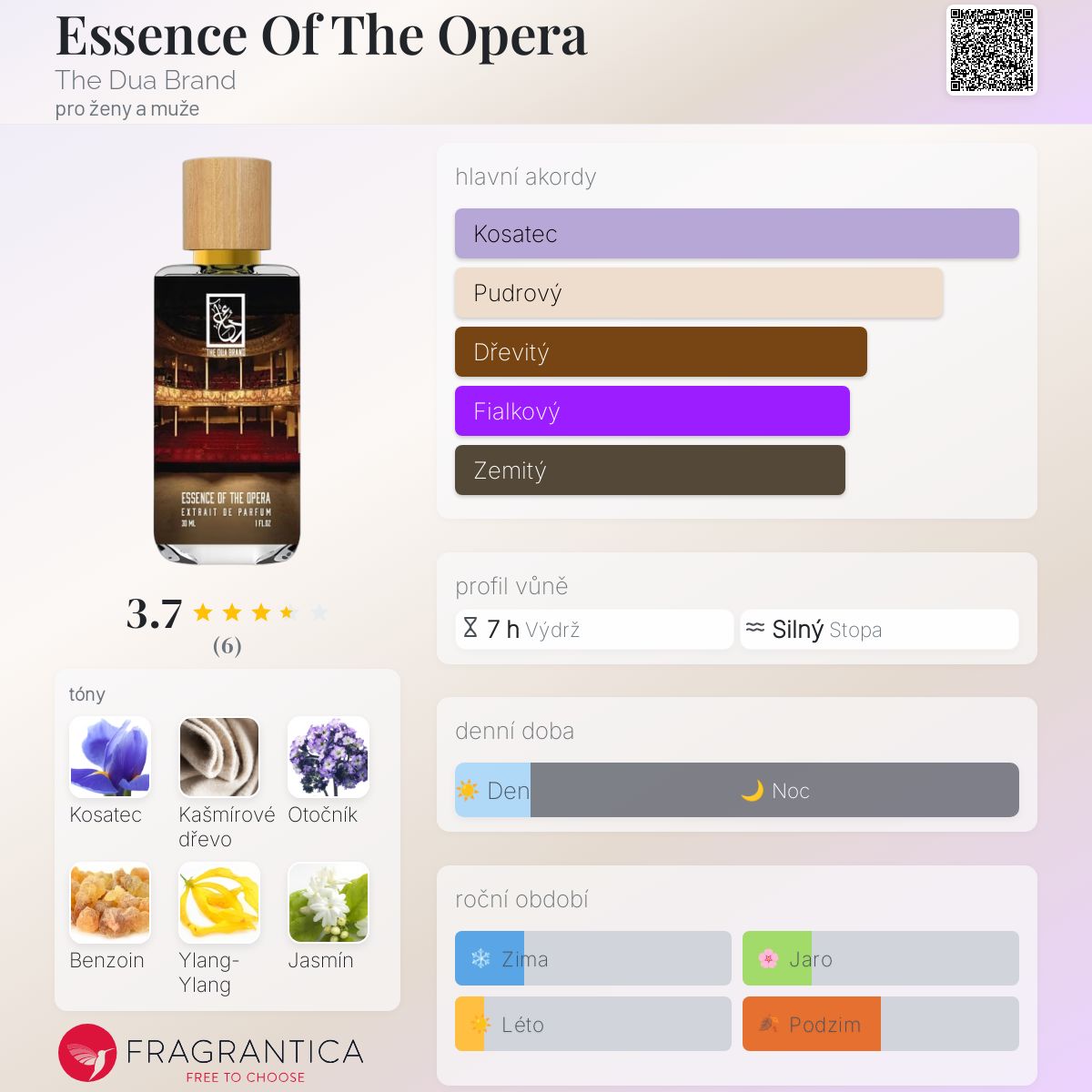 Essence Of The Opera podle The Dua Brand je Chyprově květinová vůně pro ženy a muže. Essence Of The Opera byl/a uveden/a v roce 2022.