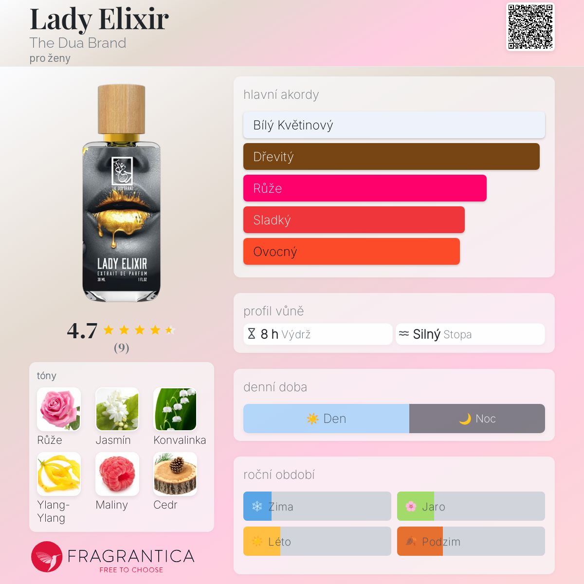 Lady Elixir podle The Dua Brand je Floral vůně pro ženy. Lady Elixir byl/a uveden/a v roce 2019.