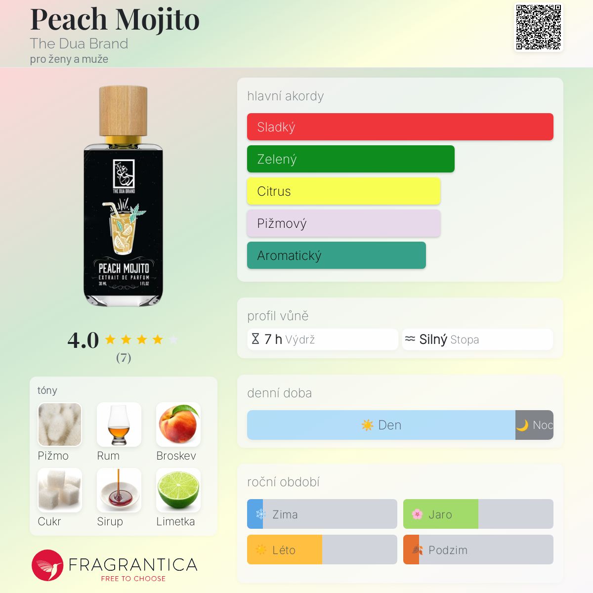 Peach Mojito podle The Dua Brand je Floral Fruity vůně pro ženy a muže. Peach Mojito byl/a uveden/a v roce 2022.