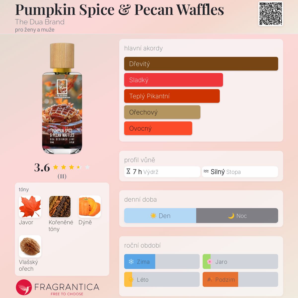 Pumpkin Spice & Pecan Waffles podle The Dua Brand je Woody Spicy vůně pro ženy a muže. Toto je nová vůně. Pumpkin Spice & Pecan Waffles byl/a uveden/a v roce 2024.