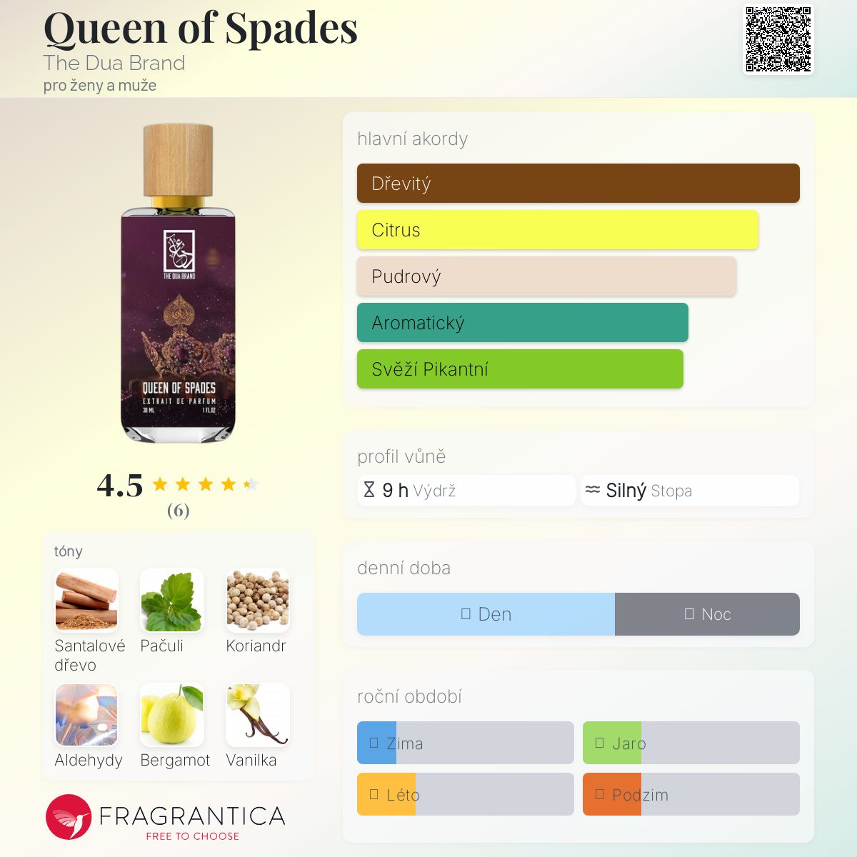 Queen of Spades podle The Dua Brand je Floral vůně pro ženy a muže. Queen of Spades byl/a uveden/a v roce 2017.