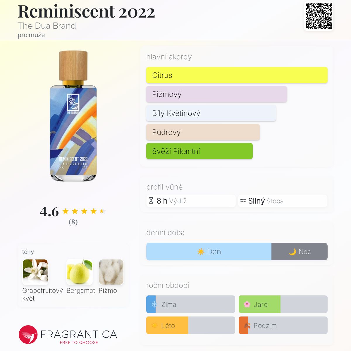 Reminiscent 2022 podle The Dua Brand je Citrus vůně pro muže. Reminiscent 2022 byl/a uveden/a v roce 2022.