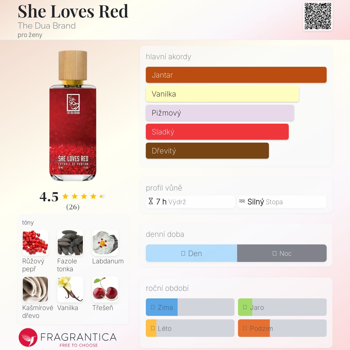 She Loves Red podle The Dua Brand je Floral vůně pro ženy. She Loves Red byl/a uveden/a v roce 2021.