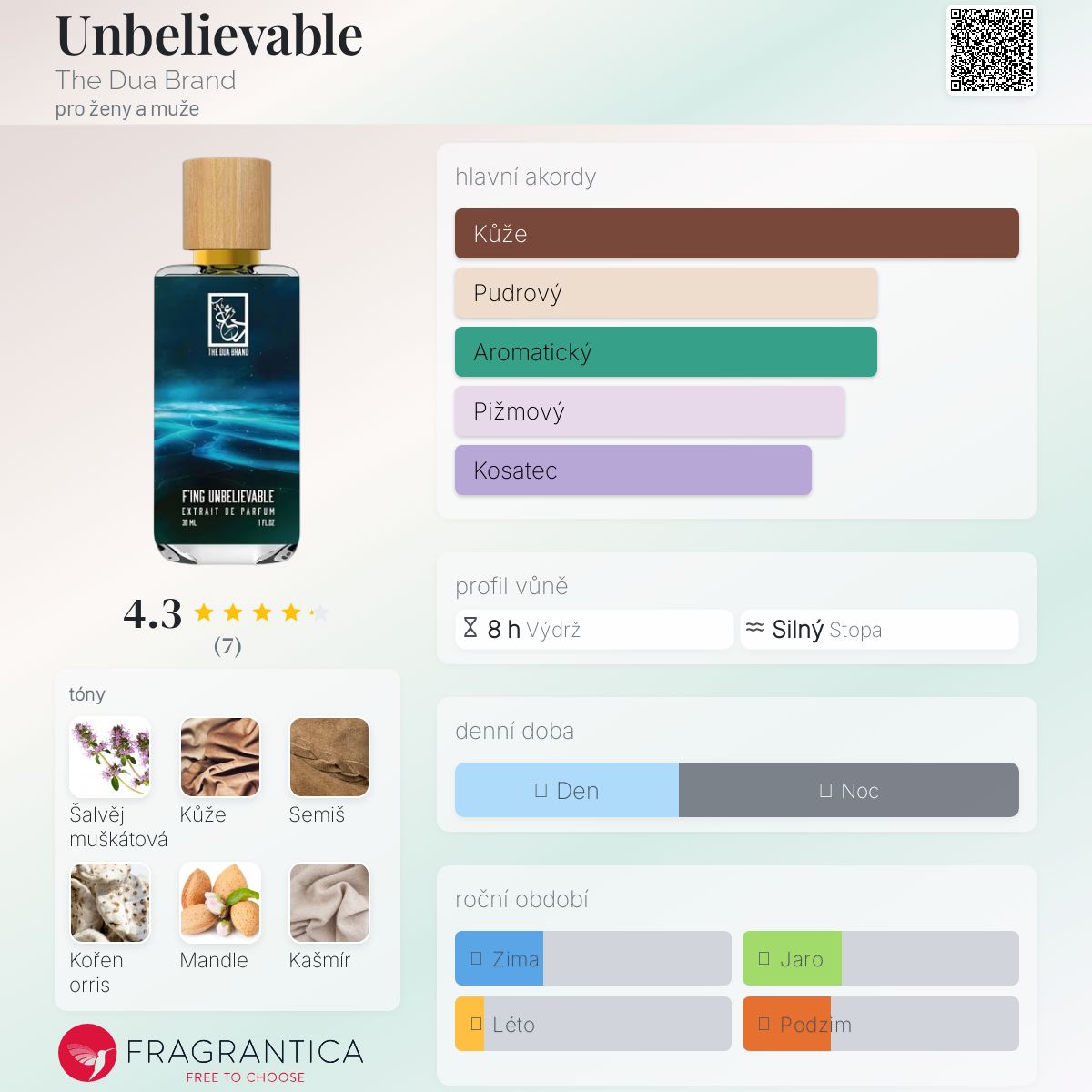 Unbelievable podle The Dua Brand je Leather vůně pro ženy a muže. Unbelievable byl/a uveden/a v roce 2017.