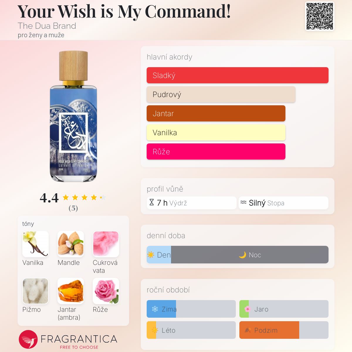 Your Wish is My Command! podle The Dua Brand je Floral Fruity Gourmand vůně pro ženy a muže. Your Wish is My Command! byl/a uveden/a v roce 2020.