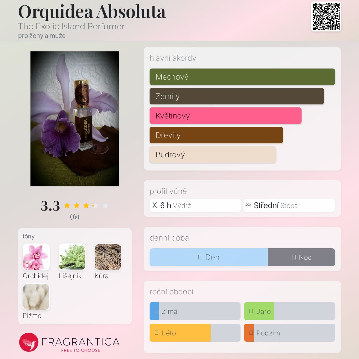 Orquidea Absoluta podle The Exotic Island Perfumer je Floral vůně pro ženy a muže. Orquidea Absoluta byl/a uveden/a v roce 2016. "Nosem" za touto vůní je Juan Perez.