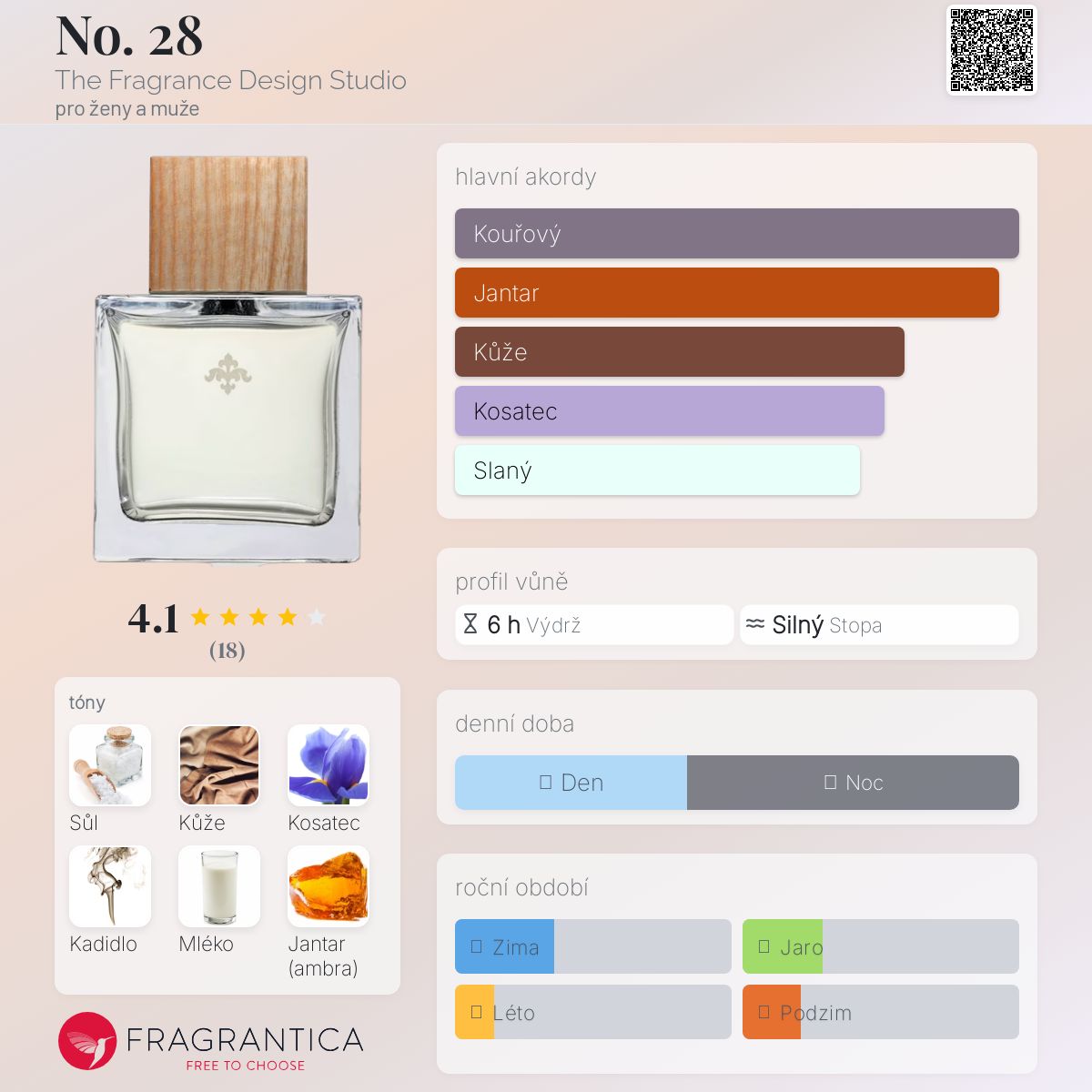 No. 28 podle The Fragrance Design Studio je Floral Woody Musk vůně pro ženy a muže. No. 28 byl/a uveden/a v roce 2013. "Nosem" za touto vůní je Cecile Hua.