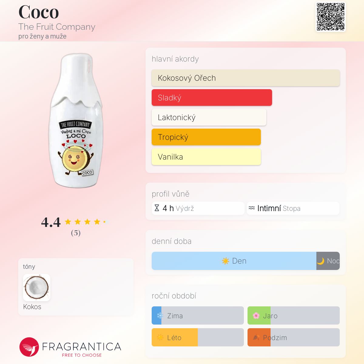 Coco podle The Fruit Company je Aromatic Fruity vůně pro ženy a muže. Toto je nová vůně. Coco byl/a uveden/a v roce 2024.