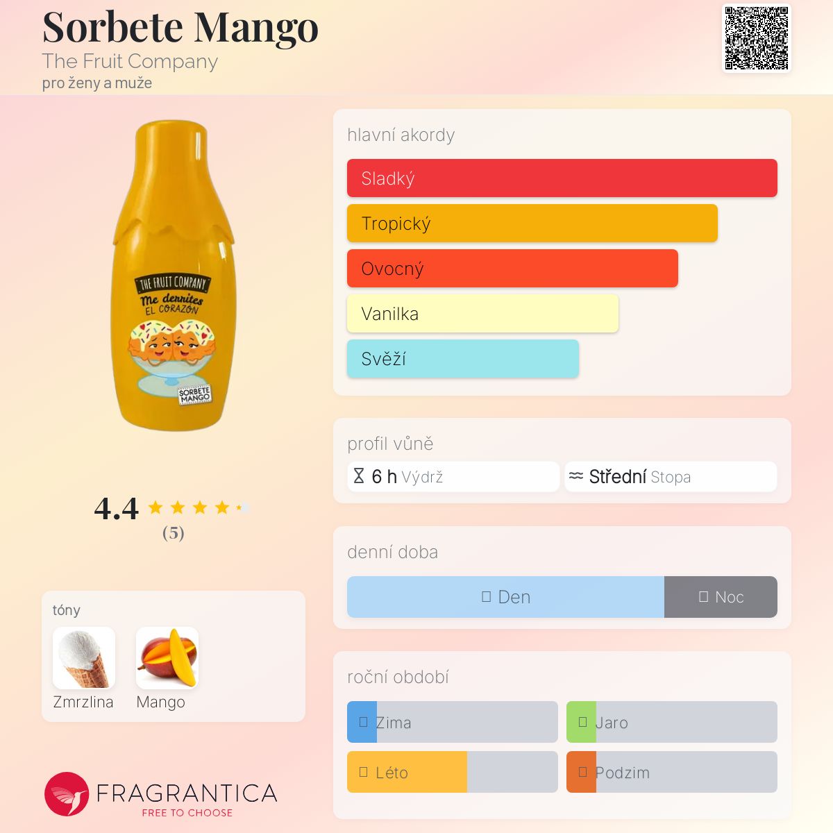 Sorbete Mango podle The Fruit Company je Aromatic Fruity vůně pro ženy a muže. Toto je nová vůně. Sorbete Mango byl/a uveden/a v roce 2024.