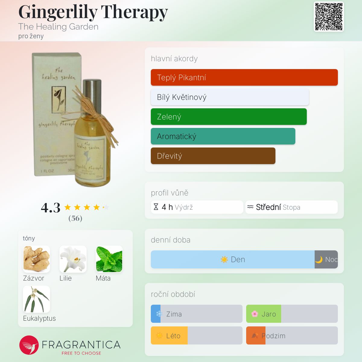 Gingerlily Therapy podle The Healing Garden je vůně pro ženy. Gingerlily Therapy byla spuštěna během 1990.