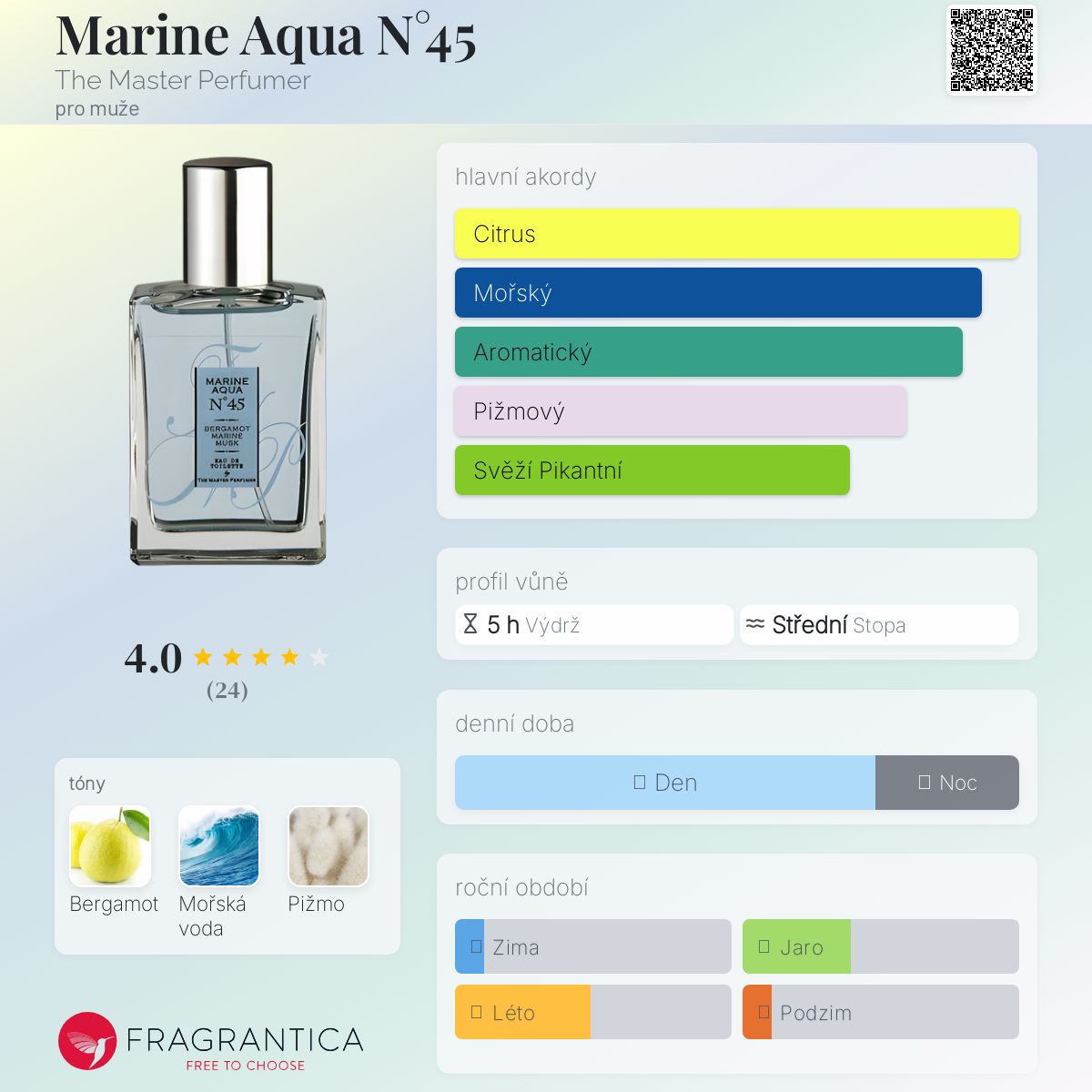 Marine Aqua N°45 podle The Master Perfumer je Aromatic Aquatic vůně pro muže. Marine Aqua N°45 byl/a uveden/a v roce 2013.