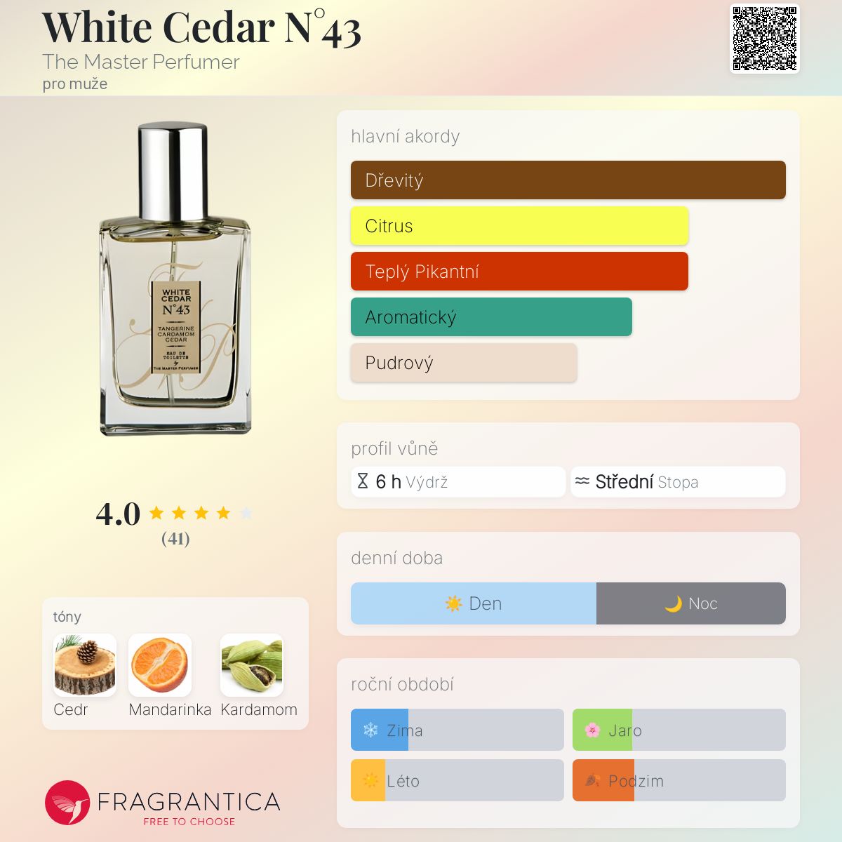 White Cedar N°43 podle The Master Perfumer je Aromatic Spicy vůně pro muže. White Cedar N°43 byl/a uveden/a v roce 2013.
