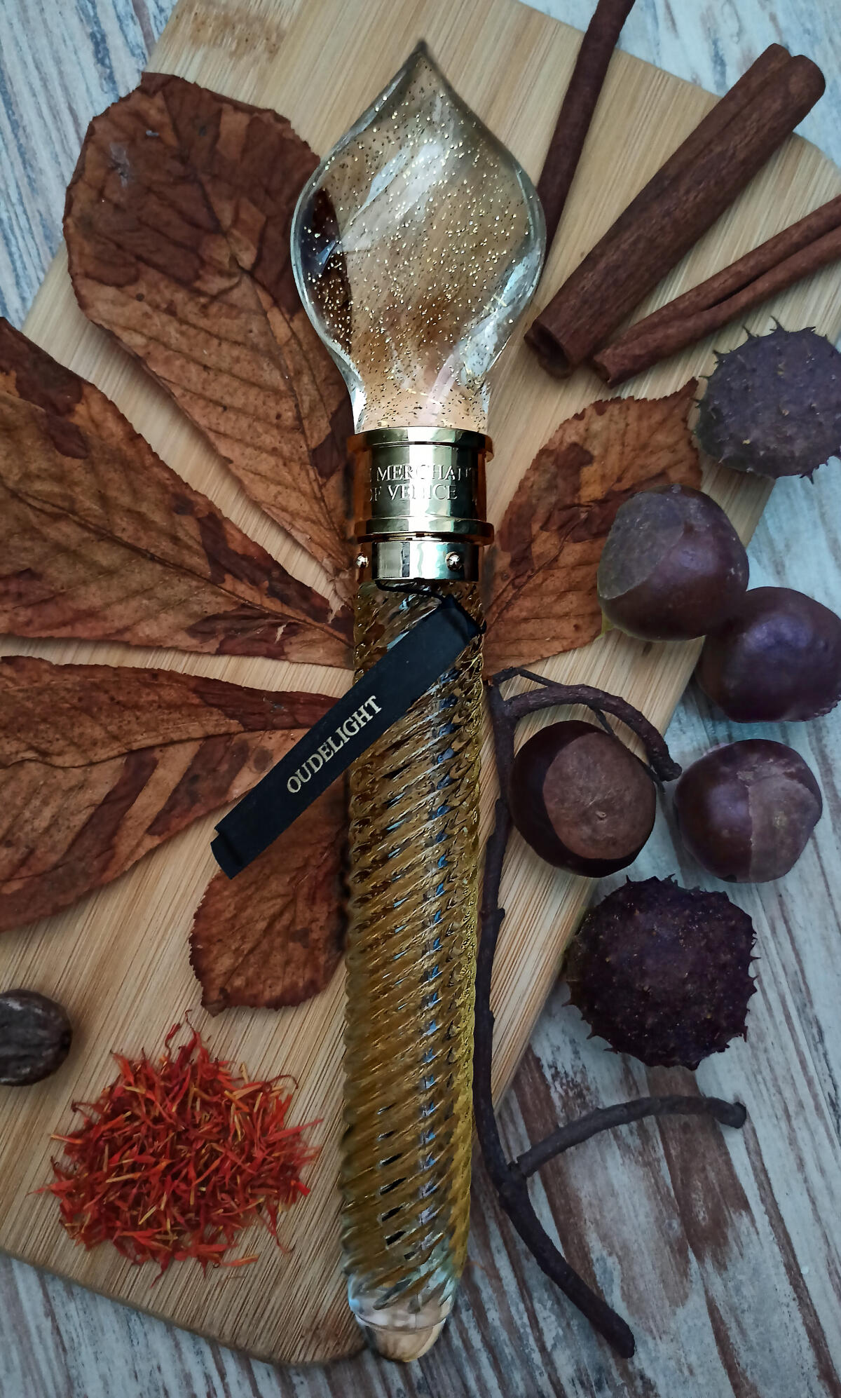 Oudelight podle The Merchant of Venice je Woody Spicy vůně pro ženy a muže. Oudelight byl/a uveden/a v roce 2015. Vrchní tóny jsou Muškátový oříšek, Skořice a Šafrán; střední tóny jsouKaštan, Otočník a Kadidlo ; základní tóny jsou Guajakové dřevo, Vanilka a Vetiver.