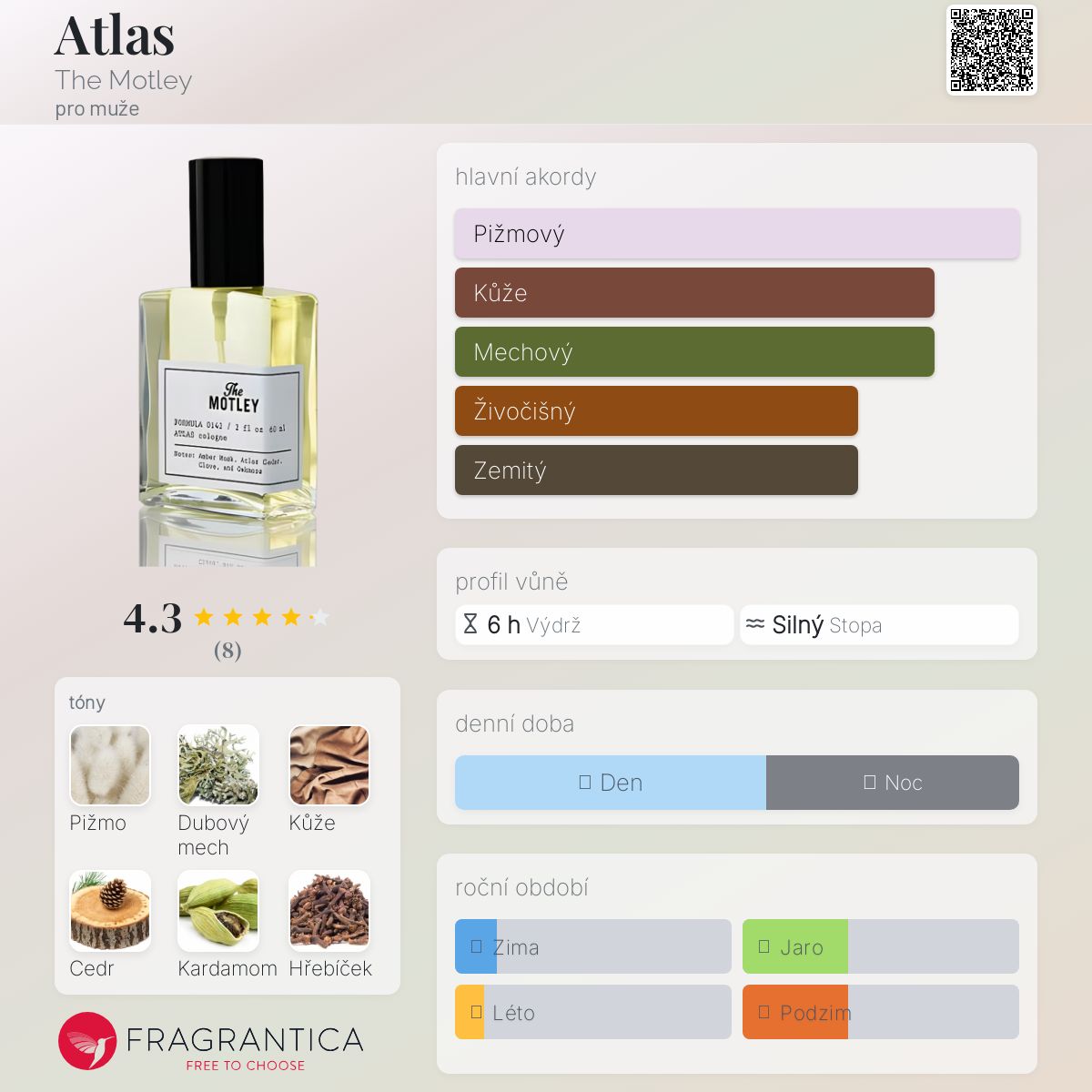 Atlas podle The Motley je Chypre vůně pro muže. Atlas byl/a uveden/a v roce 2013. "Nosem" za touto vůní je Jacqueline Steele.