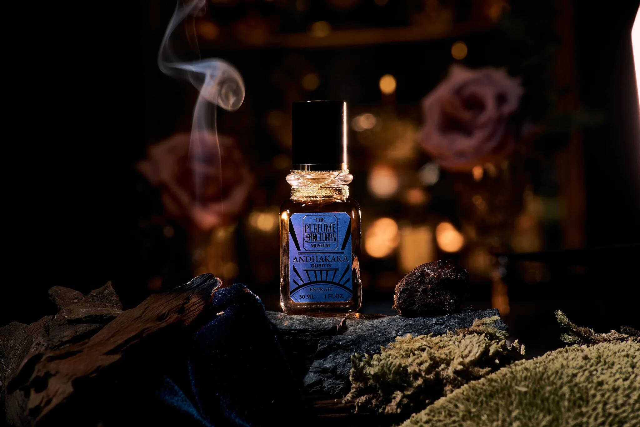 Andhakara podle The Perfume Sanctuary je Chypre Fruity vůně pro ženy a muže. Toto je nová vůně. Andhakara byl/a uveden/a v roce 2025. Vrchní tóny jsou Benzín, Kouř, Citrusy, Růže a Pryskyřičné tóny; střední tóny jsouTurecká růže, Pačuli, Kastoreum a Med ; základní tóny jsou Dubový mech, Kůže, Vetiver a Jantar (ambra).