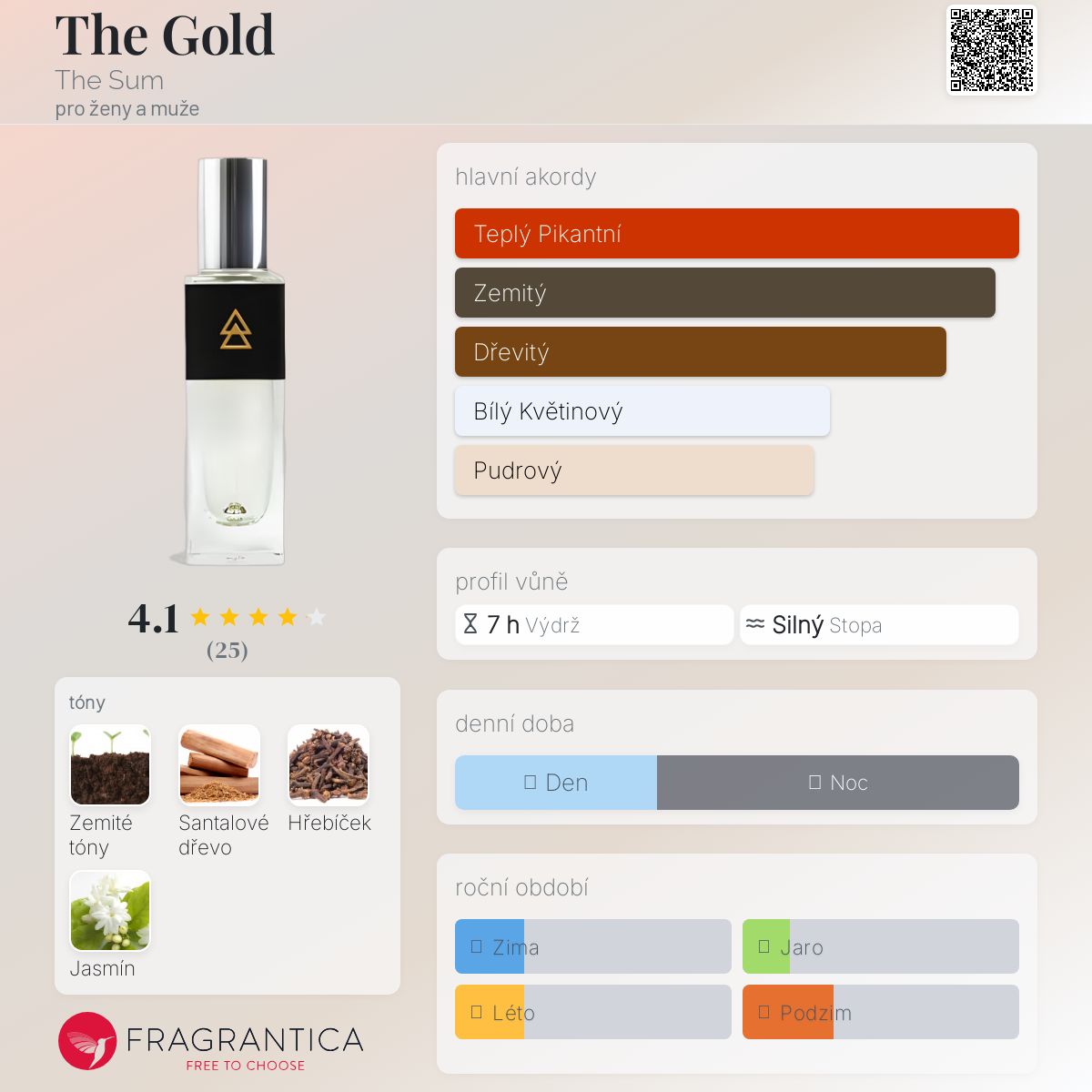 The Gold podle The Sum je Orientální Woody vůně pro ženy a muže. The Gold byl/a uveden/a v roce 2017. "Nosem" za touto vůní je Josh Meyer.