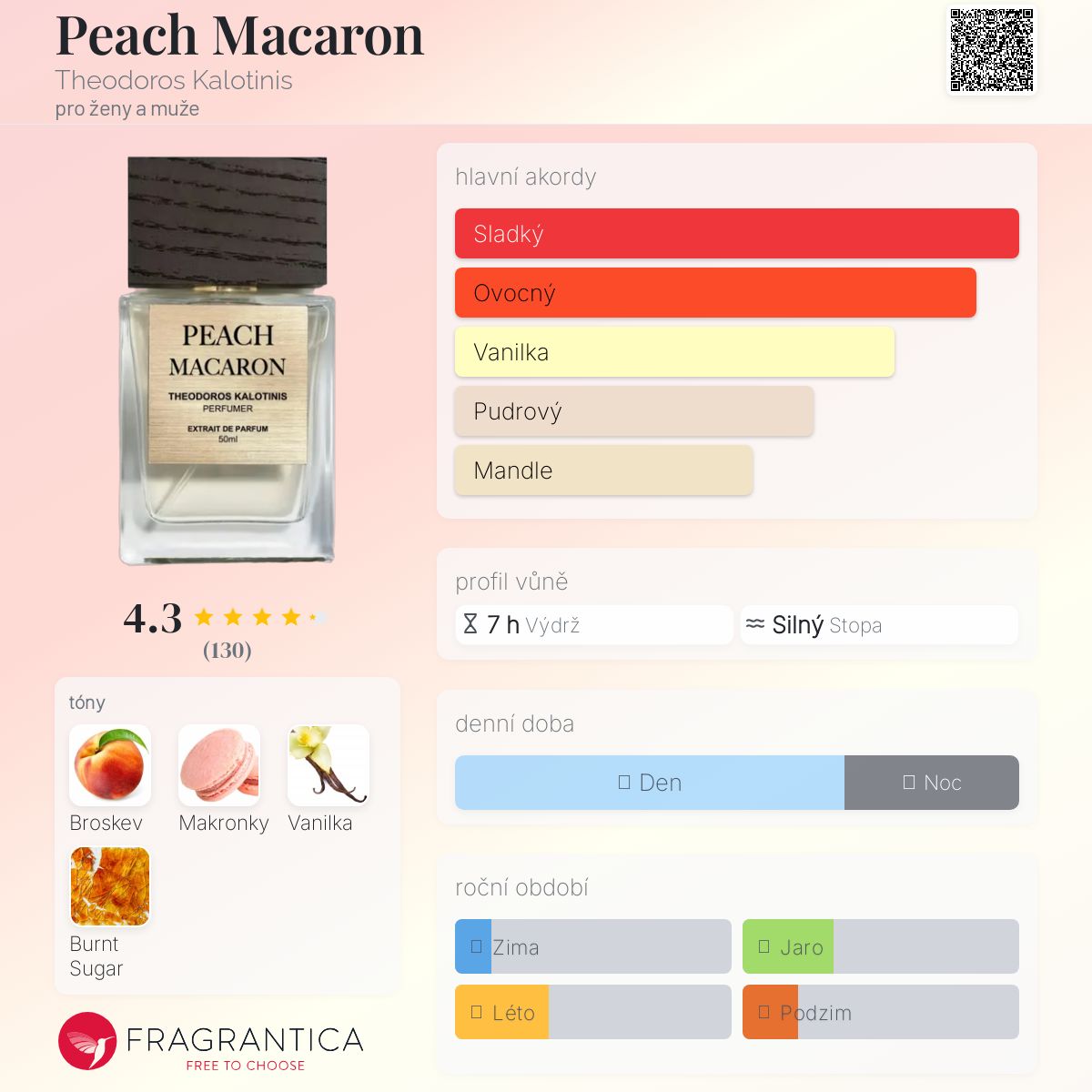 Peach Macaron podle Theodoros Kalotinis je Orientální Vanilla vůně pro ženy a muže. Toto je nová vůně. Peach Macaron byl/a uveden/a v roce 2025. "Nosem" za touto vůní je Theodoros Kalotinis.