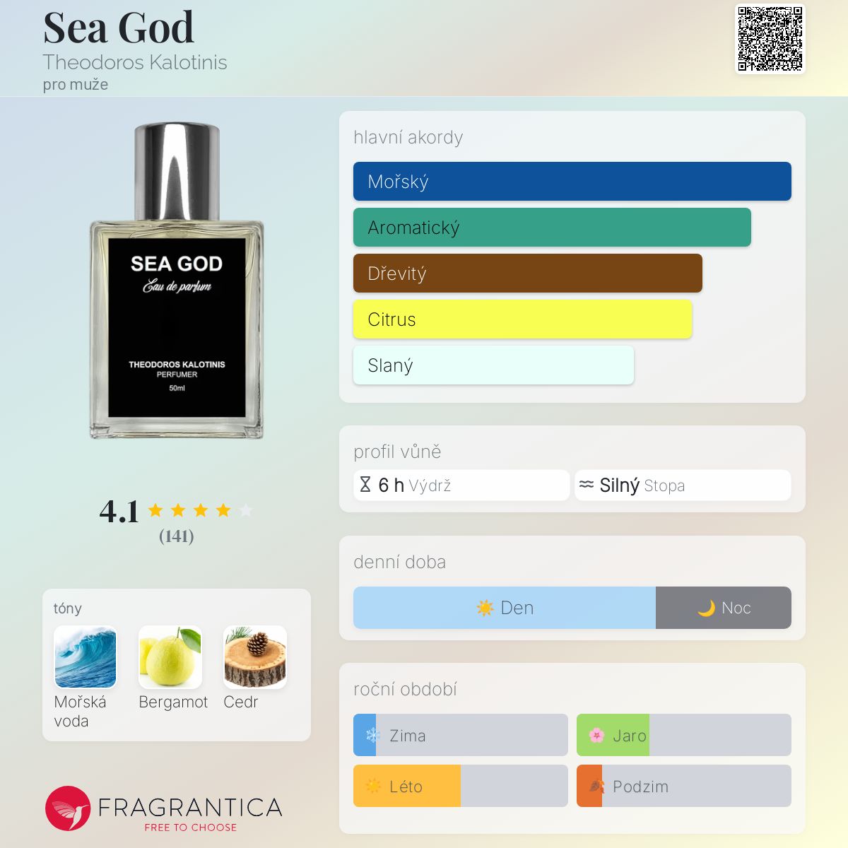 Sea God podle Theodoros Kalotinis je vůně pro muže. Sea God byl/a uveden/a v roce 2020. "Nosem" za touto vůní je Theodoros Kalotinis. Vrchní tón je Bergamot ; střední tón jeMořské tóny ; základní tón je Cedr.