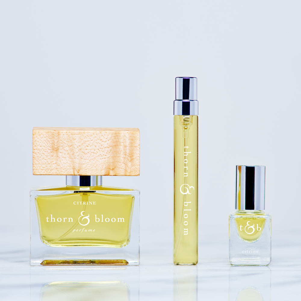 Citrine podle Thorn & Bloom je Citrus vůně pro ženy a muže. Citrine byl/a uveden/a v roce 2015. "Nosem" za touto vůní je Jennifer Botto. Vrchní tóny jsou Mandarinka klementina, Citrón, Mandarinka a Med; střední tóny jsouMagnólie champaca, Růže a Neroli ; základní tóny jsou Copaiba balzám, Kadidlo a Santalové dřevo.