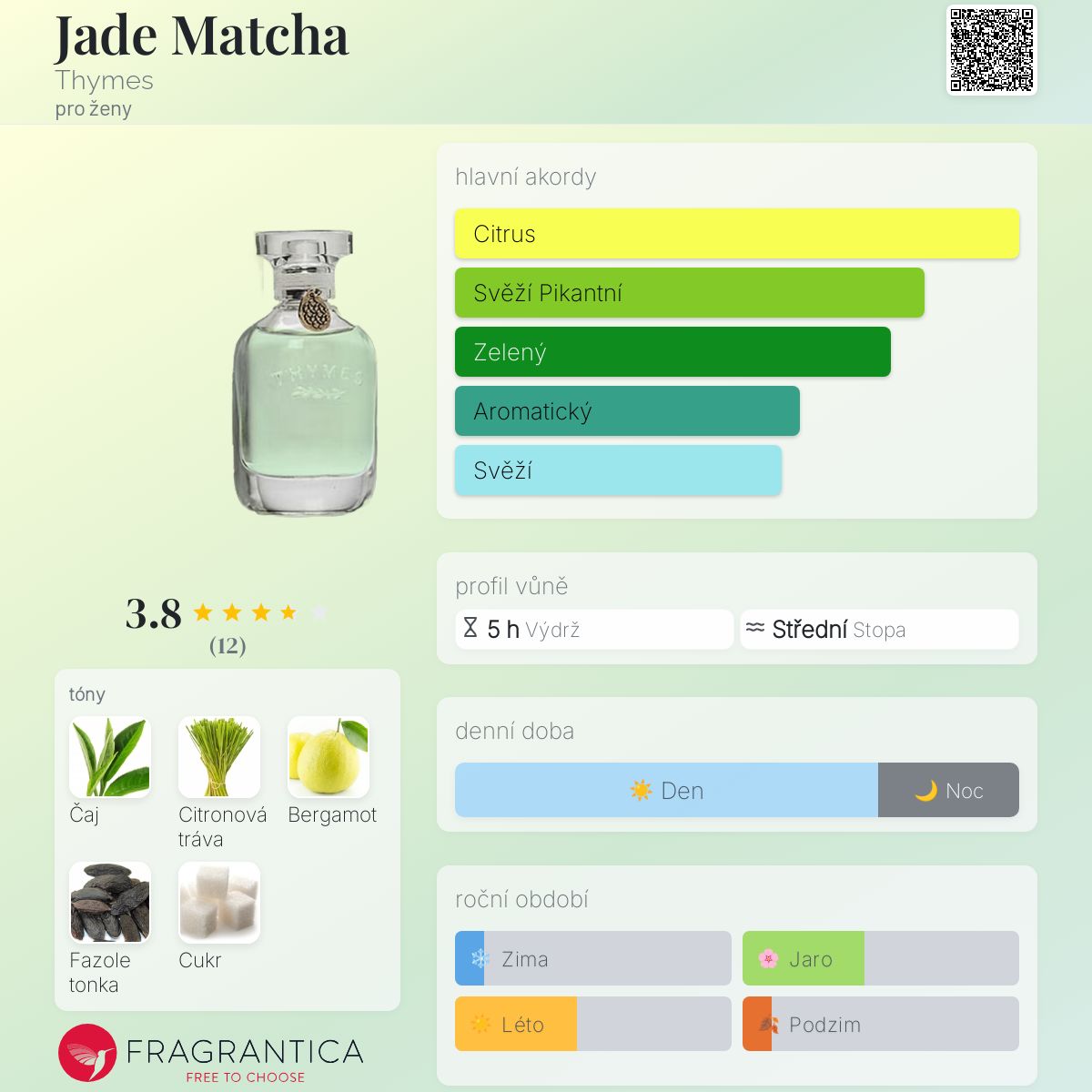 Jade Matcha podle Thymes je Citrus Gourmand vůně pro ženy. Jade Matcha byl/a uveden/a v roce 2014.
