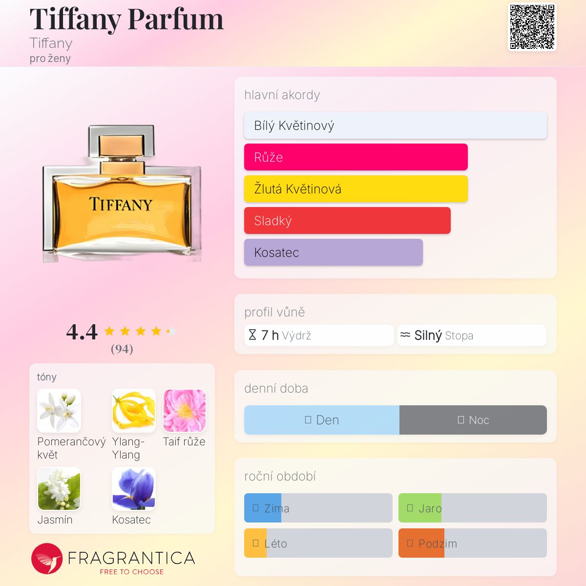 Tiffany Parfum podle Tiffany je Floral vůně pro ženy. Tiffany Parfum byl/a uveden/a v roce 1987. "Nosem" za touto vůní je François Demachy.