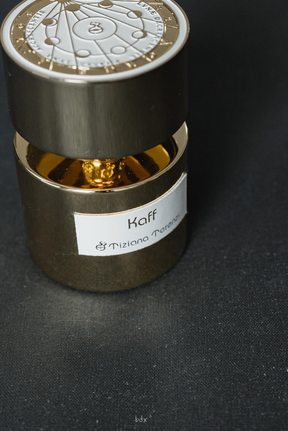 Kaff podle Tiziana Terenzi je Floral Woody Musk vůně pro ženy a muže. Kaff byl/a uveden/a v roce 2017. "Nosem" za touto vůní je Paolo Terenzi. Vrchní tóny jsou Jalovec, Bílý kosatec, Růžový pepř, Bergamot a Zázvor; střední tóny jsouKůže, Kosatec, Kořen orris, Ambra a Magnólie ; základní tóny jsou Vetiver, Cedr, Santalové dřevo a Fazole tonka.
