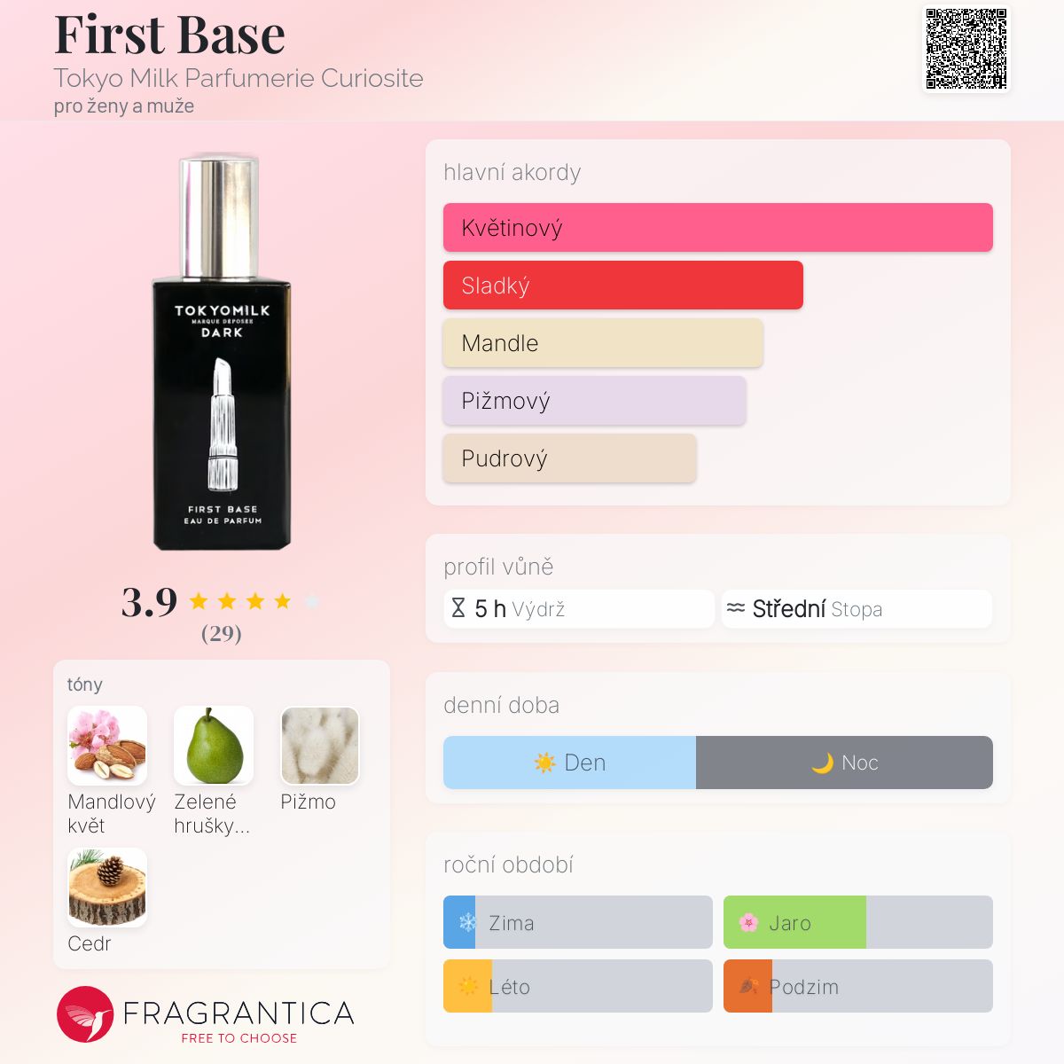 First Base podle Tokyo Milk Parfumerie Curiosite je vůně pro ženy a muže. First Base byl/a uveden/a v roce 2021. "Nosem" za touto vůní je Margot Elena.