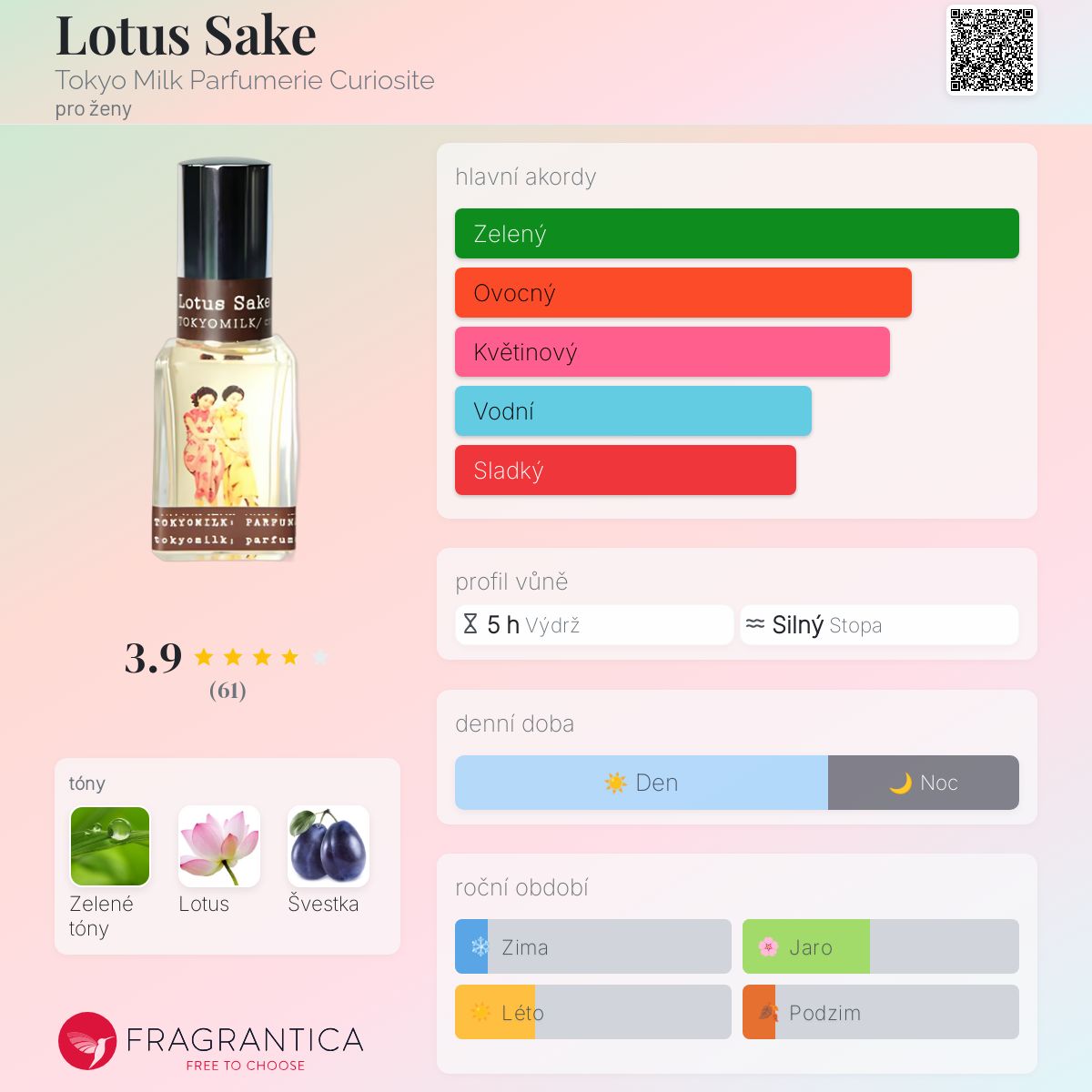 Lotus Sake podle Tokyo Milk Parfumerie Curiosite je Floral Green vůně pro ženy. Lotus Sake byla spuštěna během 2000. "Nosem" za touto vůní je Margot Elena.