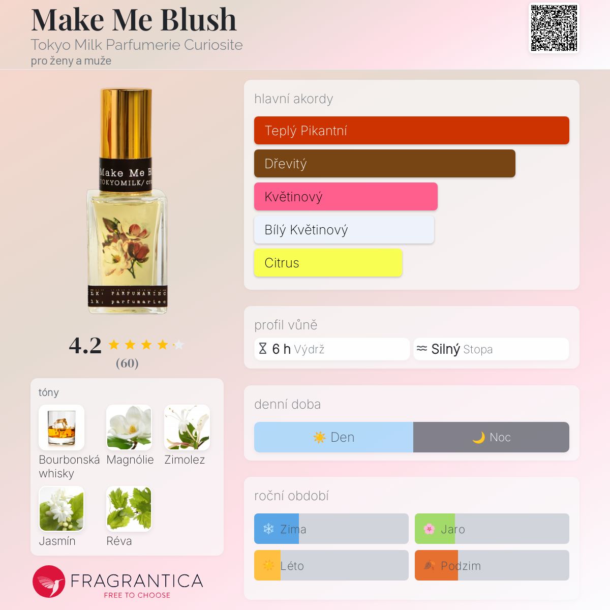 Make Me Blush podle Tokyo Milk Parfumerie Curiosite je Floral vůně pro ženy a muže. Make Me Blush byl/a uveden/a v roce 2021. "Nosem" za touto vůní je Margot Elena.