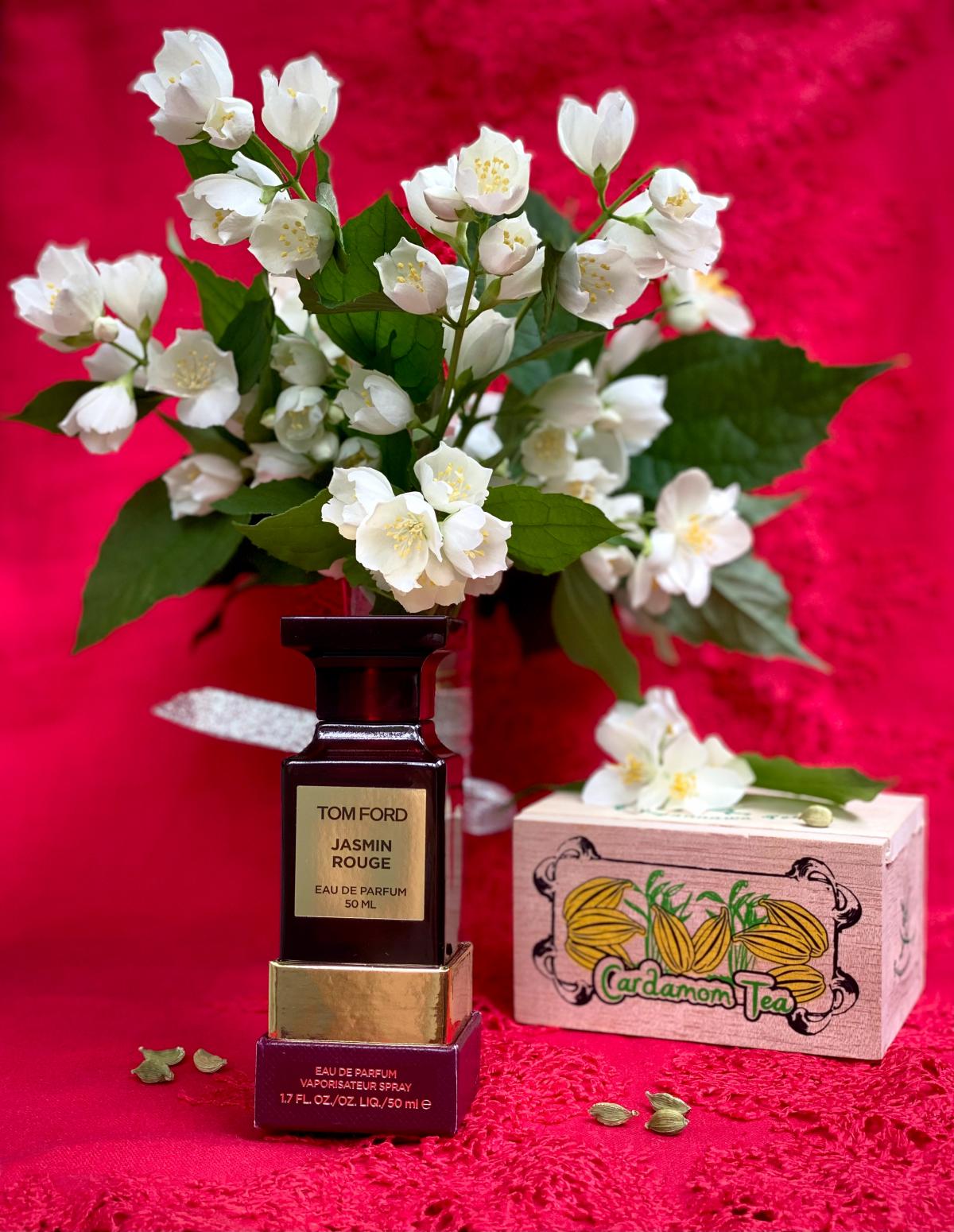 V kolekci privátních směsí vůní Toma Forda je Jasmin Rouge úspěšná, protože je dobře vyvážená a představuje vývoj.