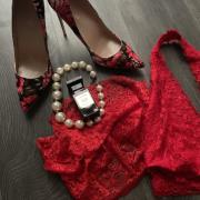 Po hodině jsem myslela, že se mi zatočí hlava... byla v tom palčivá touha to všechno smýt. Ale je to Ford... no, to přece nemůže být tak jednoduché... Dokonce jsem si prohlédla všechny parfémové výtvory (Ford má 3), abych se do něčeho takového znovu nepustila... Jsem vytrvalá, vydržela jsem 6 hodin - pořád to samé, vůně se nemění. Žádné koření, žádná hra, jeden jasmín-čaj, čaj-jasmín! Přišly mi asociace s Gutalevskou konvalinkou, která je taková mono a rok a půl stála netknutá a tady jsem ji konečně před měsícem dala mladé neteři (zbavila se jí), no vůně mládí, čistoty a nelíbí se mi, a tady zase taková .....Nebo na to, abyste si ji oblékli, potřebujete aspoň červené šaty do patra a hedvábí a šperky neméně než diamanty, aby to neznělo, s prominutím, vulgárně... rozčílila jsem se, chci tomu rozumět, chci koření, nevěřím, že je to tak snadné, šla jsem a stříkla na kartáč shora a druhý natřela až do horkého (nikdy to tak nedělala)... a co tady začalo... zapomněla jsem na všechno na světě. Řekněte mi, viděl někdo někdy červený jasmín? Já ne, ale ten Fordův je červený! Není to prostý a naivní jasmín, je to král barev a říká to jasně... Jsem růže, nic méně! A žena v něm je stejně jasná, žádoucí, vždycky v červené, šíleně krásná, přivádí mě k šílenství... ale ne rozmarná, jako růže, něžná - stačí mi podat ruku a jsem tvoje, vůbec ne pichlavá! Ale takové je třeba dosáhnout (je to velmi drahá žena), zapálit oheň a pak......Aroma-volání k mužskému pohlaví...V něm by to chtělo na španělský večírek a krátké šaty s vlečkou, rudou růži ve vlasech (a možná i v zubech) a s kastanětami: tam-tam-tam-tam-tam...tarara-ra-ra-ra...tam-tam-tam-tam:-).