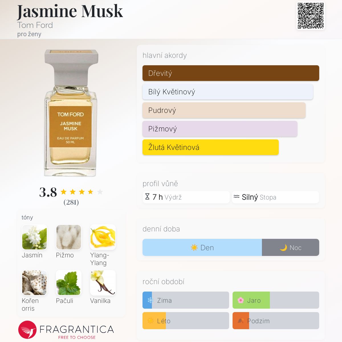 Jasmine Musk podle Tom Ford je Floral Woody Musk vůně pro ženy. Jasmine Musk byl/a uveden/a v roce 2009. "Nosem" za touto vůní je Calice Becker.