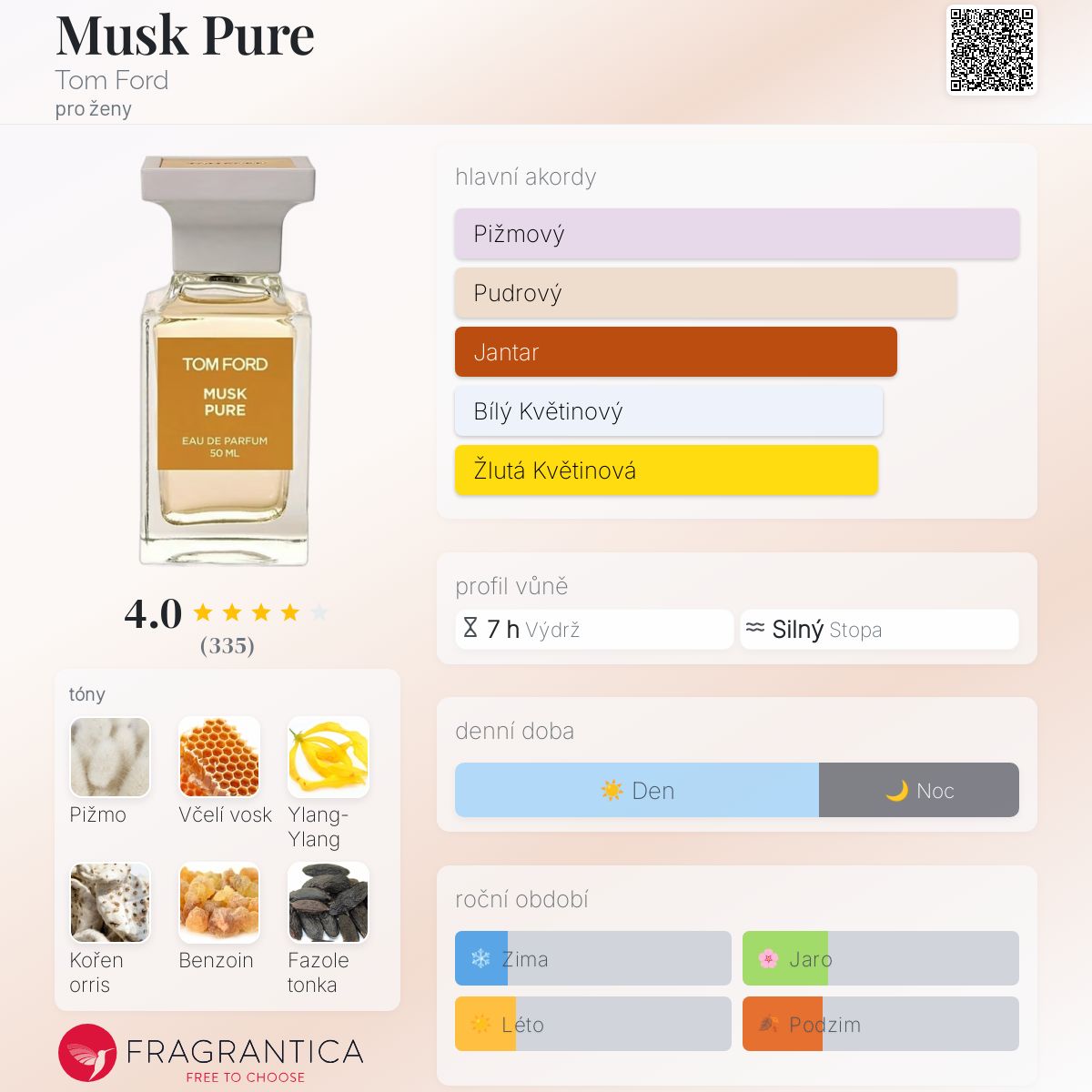 Musk Pure podle Tom Ford je Floral Woody Musk vůně pro ženy. Musk Pure byl/a uveden/a v roce 2009. "Nosem" za touto vůní je Shyamala Maisondieu.