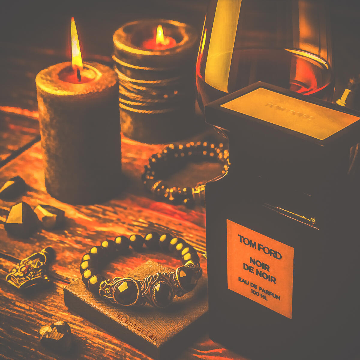 Vůně je dokonale namíchaná & voní jako tekuté zlato přelité roztaveným dřevem & milostné dopisy poseté těmi nejtemnějšími okvětními lístky růží. Oud je přítomen, ale není příliš silný & hluboká, ambrová sladkost je zmírněna trochou lásky z pačuli & zemitým bylinným nádechem. Jsem milovnice orientu a cypřiše se mi někdy obracejí v žaludku, ale když jsou dobře provedené, mám tendenci je zbožňovat. Noir je namíchaný dokonale.