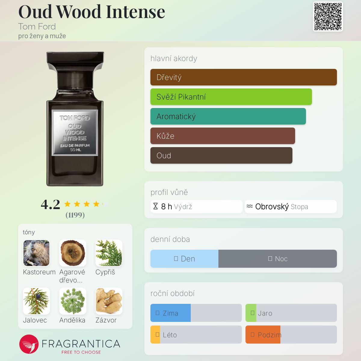 Píšu po nějaké době nošení, vůni jsem si koupila. Prostě jaderný lektvar!!! Směs, která vyvolává bouři emocí!!!! Po nanesení vůně prostě dýchá..... Vydechuje... Vdechuje... Hlasitě křičí... Velmi hlasitě... Okamžitě označuje svůj status a drahé přírodní složky, jako by říkala, že slovo "ekonomika" a "optimalizace nákladů na složky" jsou nevhodné!!!! Od prvního nádechu každý nos pochopí, že se jedná o seriózní, nekompromisní niku! A i když je Tom Ford luxusní, ale sám řekl, že v této řadě "Private Blend" si vytváří, co chce, a není ničím omezován..... Tady je ukázkový příklad!!! A mimochodem, Fordův rukopis bude v tomto parfému rozpoznatelný. Trénované nosy okamžitě identifikují DNA jeho vůní. Celkový, rozpoznatelný styl značky je plně respektován!!!! Další... Oud je zahrán extrémně NOVĚ, v nekompromisní snaze o naprostou originalitu a neotřelost této interpretace!!!! Podívejte se na to... Nic podobného nenajdete (dokud napodobitelé metodou pokusů a omylů nevyrobí alespoň něco podobného a samozřejmě ne tak jasného a rodokmenného!) Souhlasím s mnoha názory, obvyklý "Oud Wood" se tomu nepodobá!!!! Samostatný monolit!!!! O pražcích a vůni podzemí.... Ano, okamžitě zcela vhodná asociace. Dovolím si toto přirovnání v počáteční fázi. V práci mi jednou kolegyně řekla, že to smrdí jako guma. Ale vždyť je to složitá vůně! Musíte přesně vědět, kolik a kam aplikovat. Víc se dalo dávkování a nebude se to uhlazovat (jako v čerstvém...) Dva psi na zátylek - zcela dostačující dávka aplikace. A teď to nejzásadnější a nejdůležitější, co se týká mého vnímání a názoru: Způsob, jakým se stává poté, co přestane křičet..... Nebo dokonce mluvit. Začne šeptat. Po pěti nebo šesti hodinách aplikace. To je to nejlepší, co jsem kdy kde poslouchal!!! Jeho klidný základ je prostě opojný..... Co to je? NEVÍM... Prostě mi to vyráží dech... Možná je to vůně ztraceného ráje... Nebo vůně stromu života. Dala jsem si ji na zátylek, když jsem si ji koupila. Vyšel jsem ven v mrazu s kapucí na hlavě. Druhý den jsem vyšel ven a procházel se po ulici..... Je zima. Nasadil jsem si zpět kapuci.... Nedaleko mě prošel pár (kluk a za ním holka.) A najednou jsem za ní uslyšel jen božský voňavý puch ... Chtěla jsem se rozběhnout a zeptat se, co je to za zázrak? Ale oni odešli a já šel dál..... A vůně toho sotva znatelného pýru mě pronásledovala..... A najednou jsem si uvědomil, že to není vůně té dívky... To kapuce mé bundy vydává jemný základ z posledního dne nošení, který se na kapuci dostal ze zadní části mých vlasů..... Byla jsem v šoku.... Chtěla jsem vědět a mít stejnou vůni jako ta dívka a ona byla původně moje.... Právě jsem se procházela... Procházka. A usmívala se. Necítit mráz a dostat se pryč z toho podivného dobrodružství, o kterém nikdo nevěděl..... A teď už to víš jen ty... Ti, kteří dočetli až do konce.... Proč vám děkuji!!! Vždyť recenze není v kostce!!!! :) ZÁVĚR: Tohle je zatím moje nejoblíbenější vůně!!! Udělala jsem si z ní své voňavé "já" Za poslední krátkou dobu (jak už to tak bývá) jsem si do své sbírky pořídila mnoho plných lahviček a něco málo flakónků. Zatím žádná nevyburcovala mé vnímání z útlumu do bouře tak jako Oud Wood Intense...... A také mě velmi mrzí, že informace o tom, kdo přesně pracoval na vzniku tohoto mistrovského díla, zůstávají utajeny. Takové, které umí křičet a pak umí jemně a tak sladce šeptat...... A JÁ HO MILUJU HLAVNĚ PRO TEN ŠEPOT.....