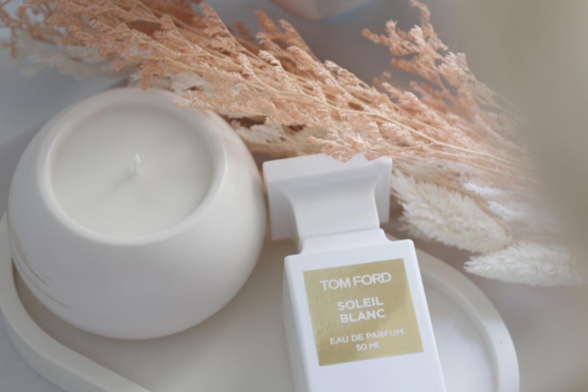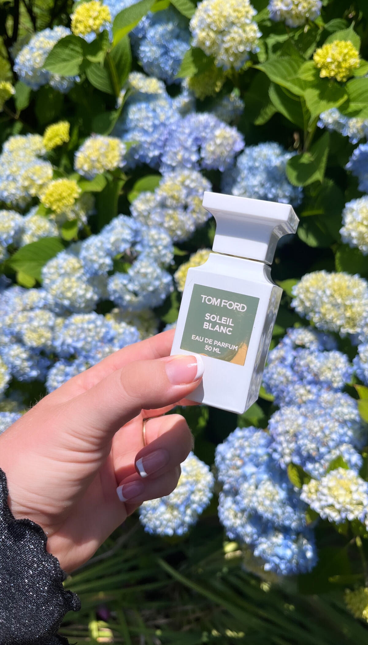 Soleil Blanc má velmi svěží vrchní tóny bergamotu a velmi pikantní díky kardamonu a růžovému pepři. Pokračuje velmi květinovou částí, jasmínem a krémovou tuberózou, ne příliš sladkou díky růžovému pepři a s dokonalým kokosovým základem. Zasychá lehce pižmově a s velmi hřejivým pocitem sluncem políbené opečené kůže omývané oceánem.