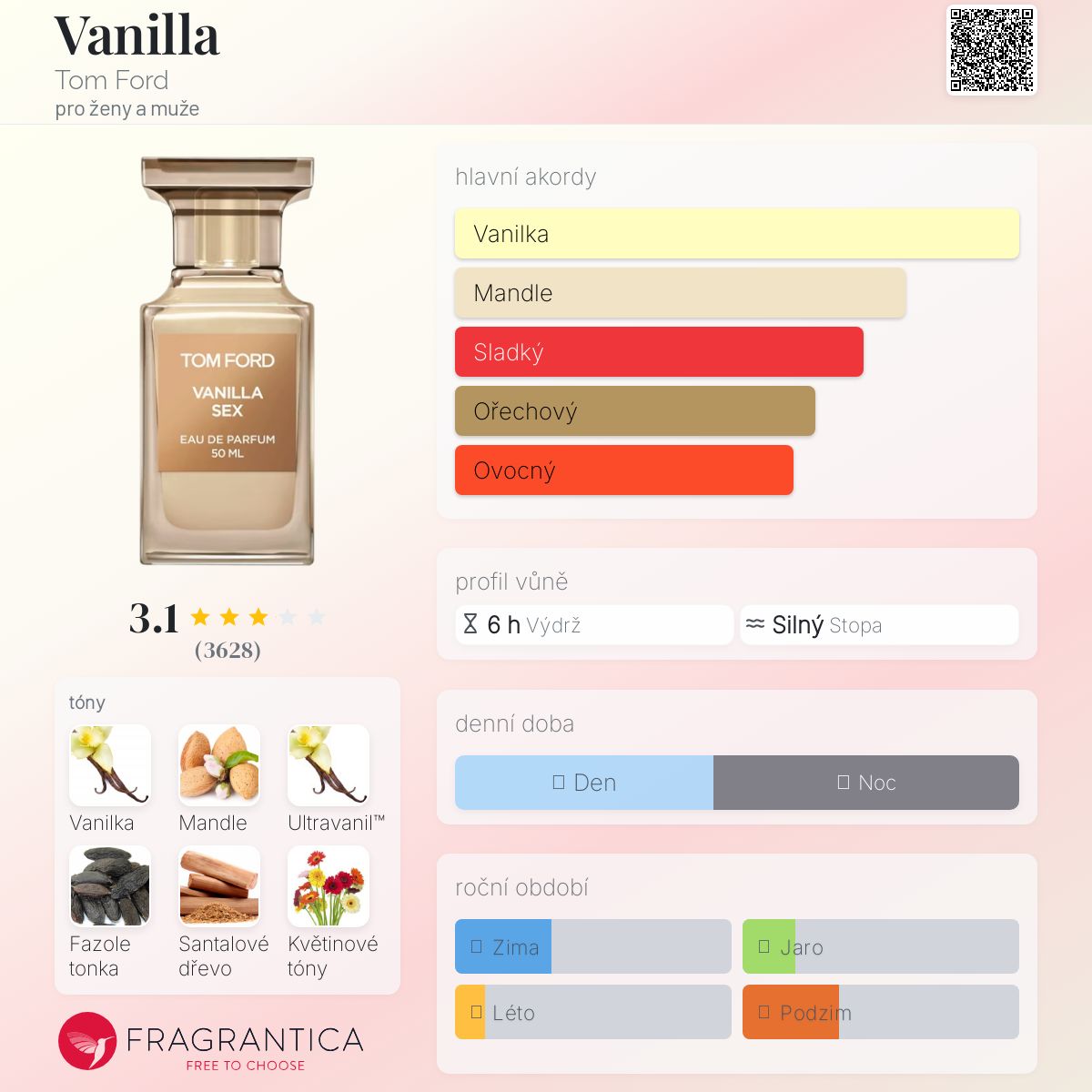 Nesouhlasím s jednoduchostí kompozice: Yves Rocher Vanille byla jednoduchá, ale zároveň velmi příjemná, a tady jsou odkazy na rozpálenou kůži v podobě slaných vanilkových aspektů, a všelijaké vulgarity, jen pan Ford ví jaké, v podobě hořkých mandlí, a objetí v podobě pudrových vanilkových a tonkových aspektů, a samozřejmě, jaký s*x bez lásky 😅 objemný květinový blok jasmínu nebo narcisů to přímo dává najevo :) Vůně se mi líbí, ale je to tak.