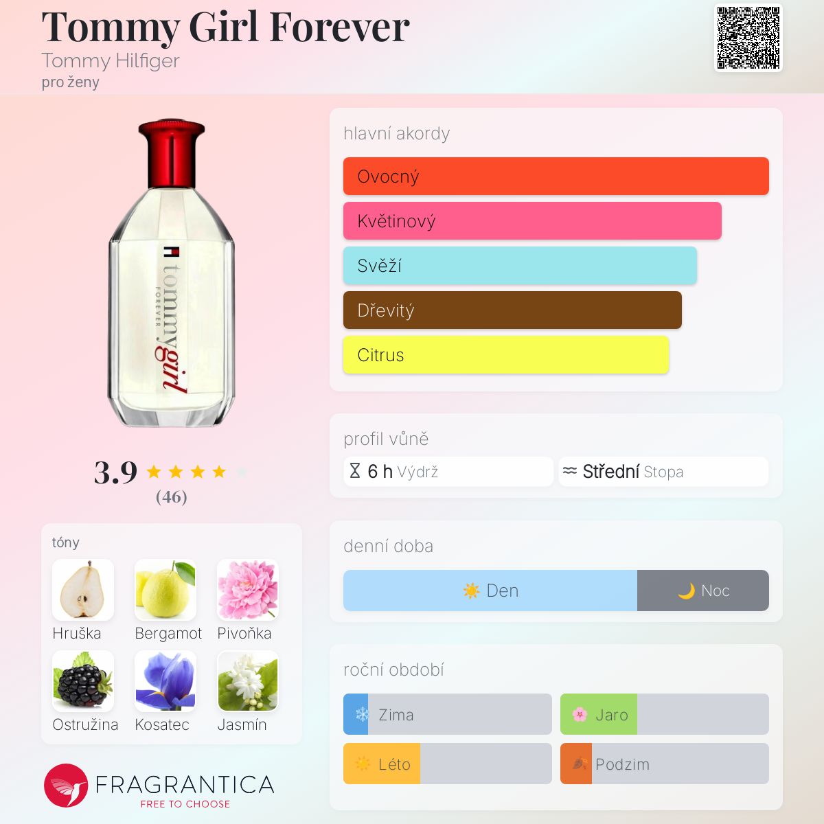 Tommy Girl Forever podle Tommy Hilfiger je Floral Fruity vůně pro ženy. Toto je nová vůně. Tommy Girl Forever byl/a uveden/a v roce 2024. Vrchní tóny jsou Bergamot, Hruška a Ostružina; střední tóny jsouPivoňka, Jasmín a Kosatec ; základní tóny jsou Jantar (ambra), Santalové dřevo a Cedr.