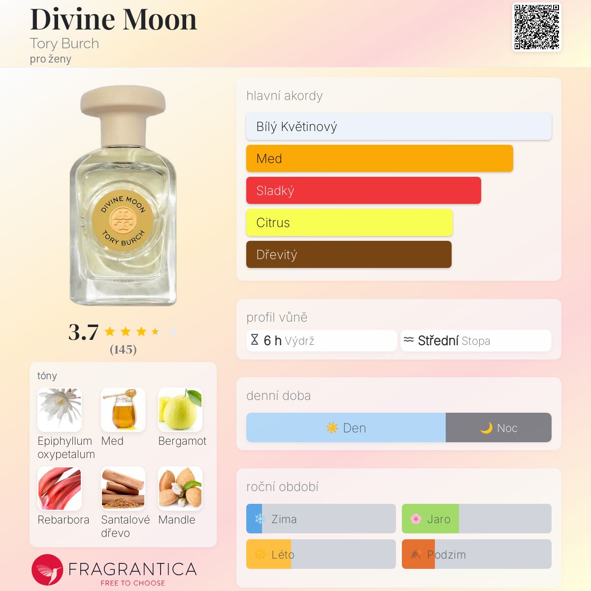 Divine Moon podle Tory Burch je vůně pro ženy. Divine Moon byl/a uveden/a v roce 2022. Vrchní tóny jsou Bergamot a Rebarbora; střední tóny jsouEpiphyllum oxypetalum a Med ; základní tóny jsou Santalové dřevo a Mandlové mléko.