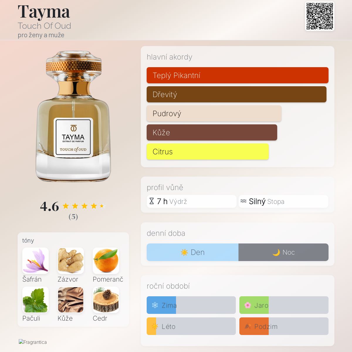 Hodnocení parfému 4.60 z 5 s 5 hlasy