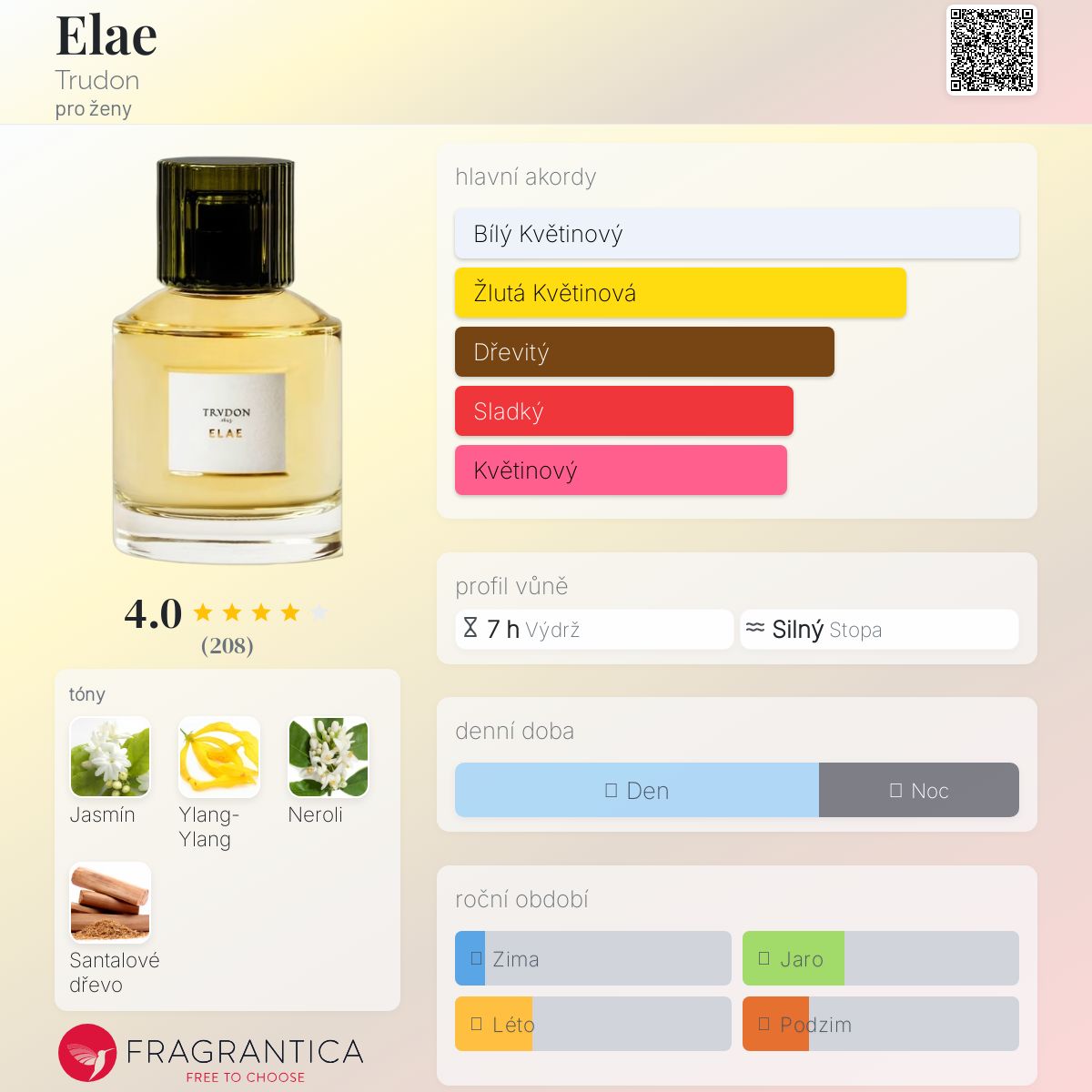 Elae podle Trudon je Floral vůně pro ženy. Elae byl/a uveden/a v roce 2019. "Nosem" za touto vůní je Yann Vasnier.