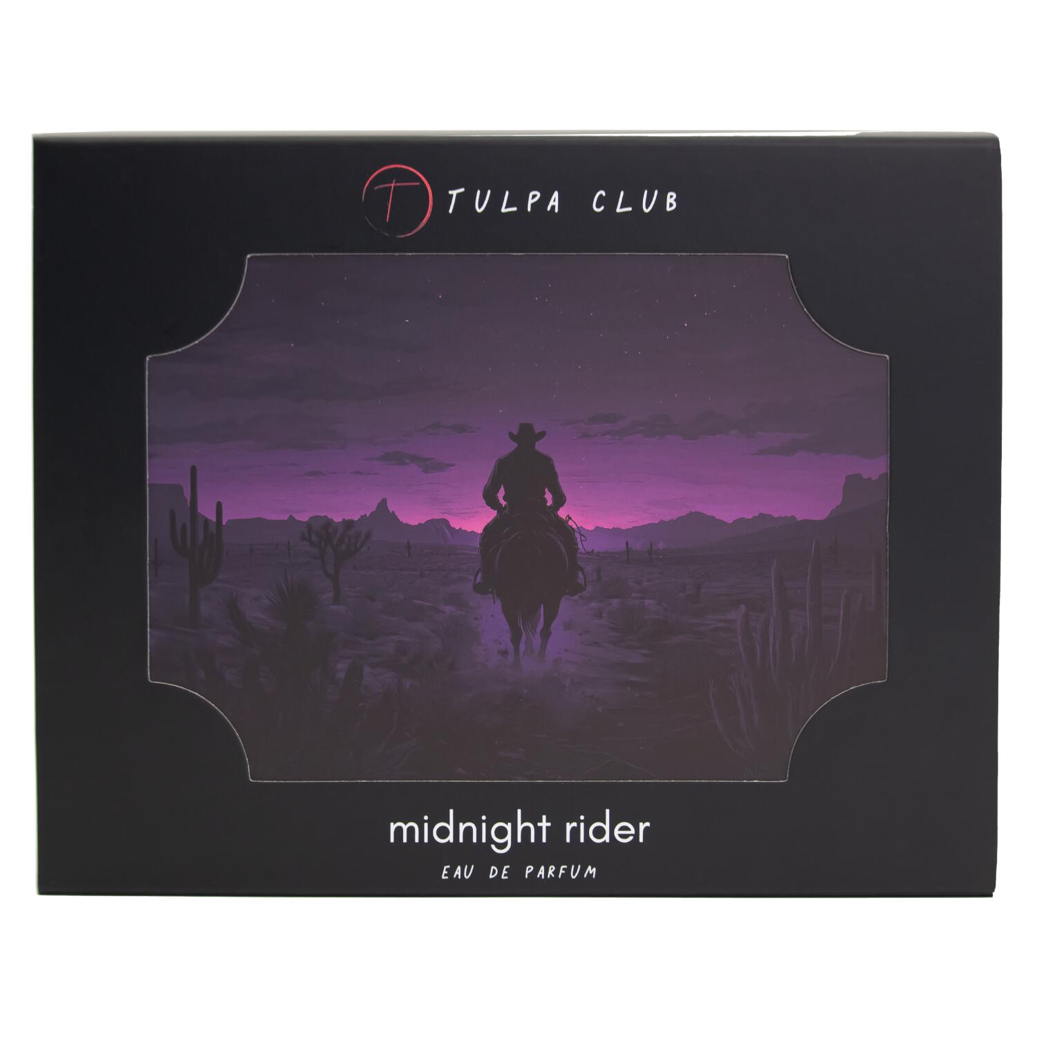 Midnight Rider podle Tulpa Club je Leather vůně pro ženy a muže. Toto je nová vůně. Midnight Rider byl/a uveden/a v roce 2025. Vrchní tóny jsou Kůže a Květinové tóny; střední tóny jsouTabák a Písek ; základní tóny jsou Koření a Jantar (ambra).