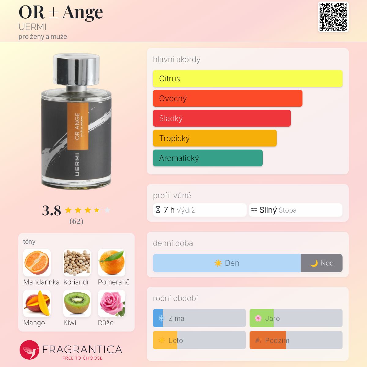 OR ± Ange podle UERMI je Citrus vůně pro ženy a muže. OR ± Ange byl/a uveden/a v roce 2016. "Nosem" za touto vůní je Cécile Zarokian.