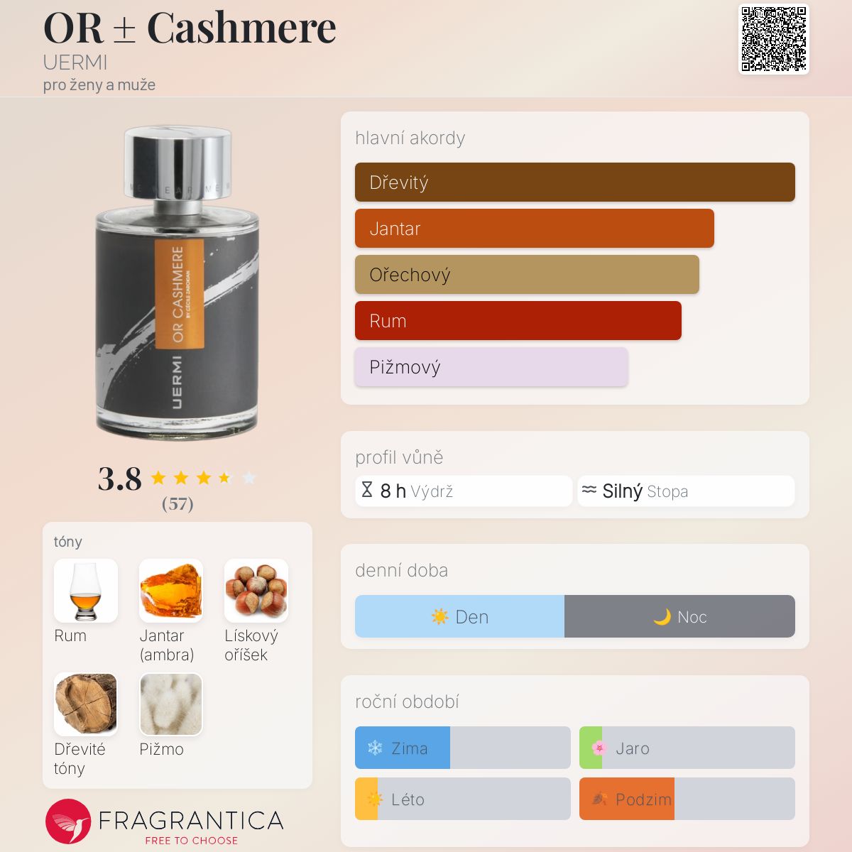 OR ± Cashmere podle UERMI je vůně pro ženy a muže. OR ± Cashmere byl/a uveden/a v roce 2016. "Nosem" za touto vůní je Cécile Zarokian.