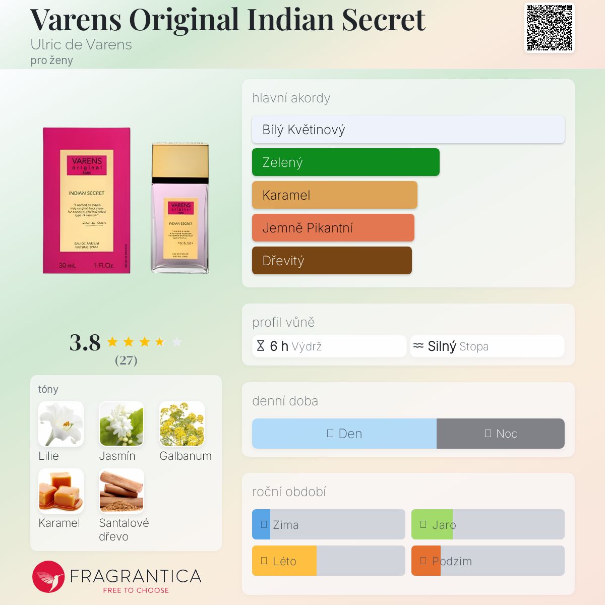 Varens Original Indian Secret podle Ulric de Varens je Orientální Vanilla vůně pro ženy. Varens Original Indian Secret byl/a uveden/a v roce 2008. "Nosem" za touto vůní je Pierre Bourdon.