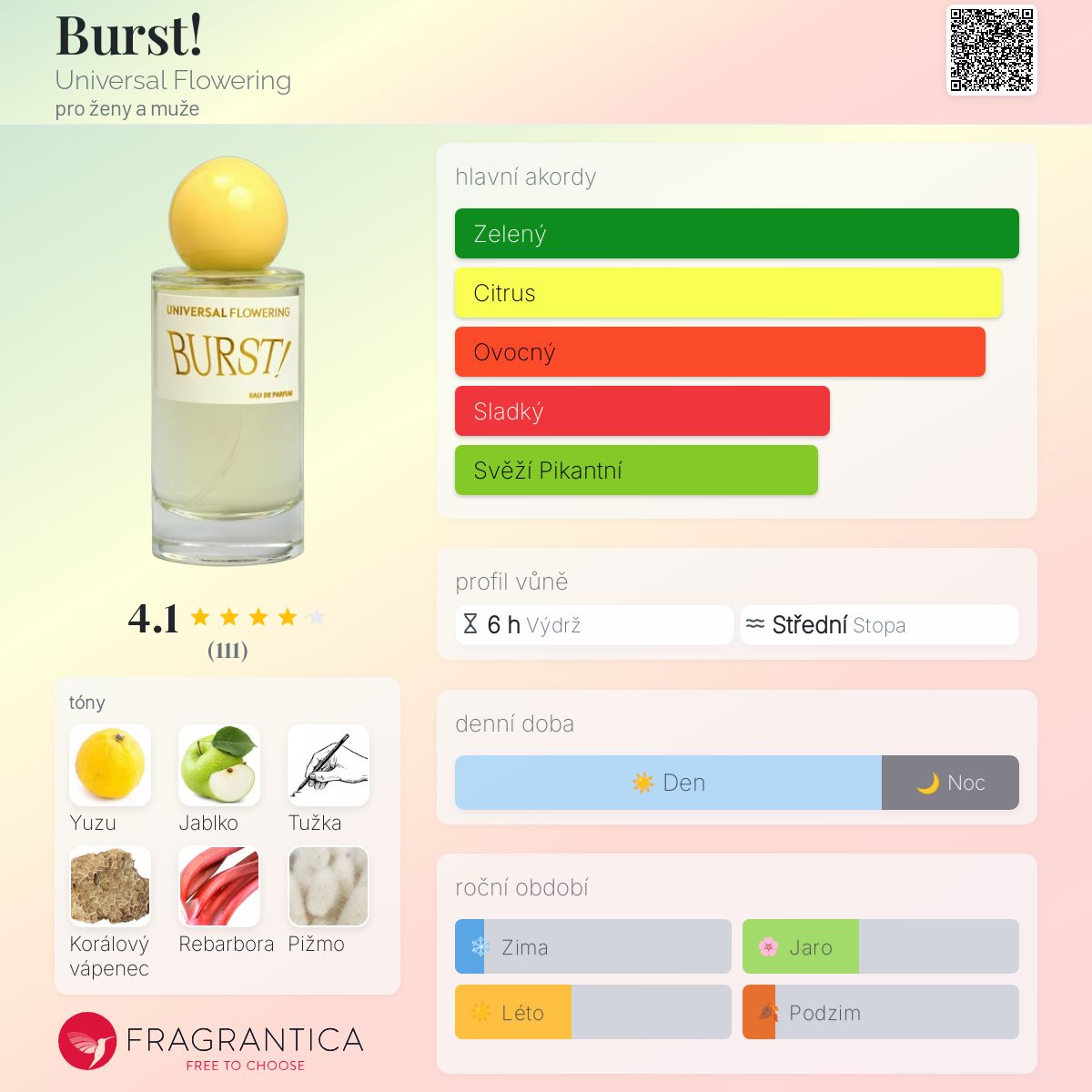 Burst! podle Universal Flowering je Aromatic Fruity vůně pro ženy a muže. Burst! byl/a uveden/a v roce 2016. "Nosem" za touto vůní je Courtney Rafuse.