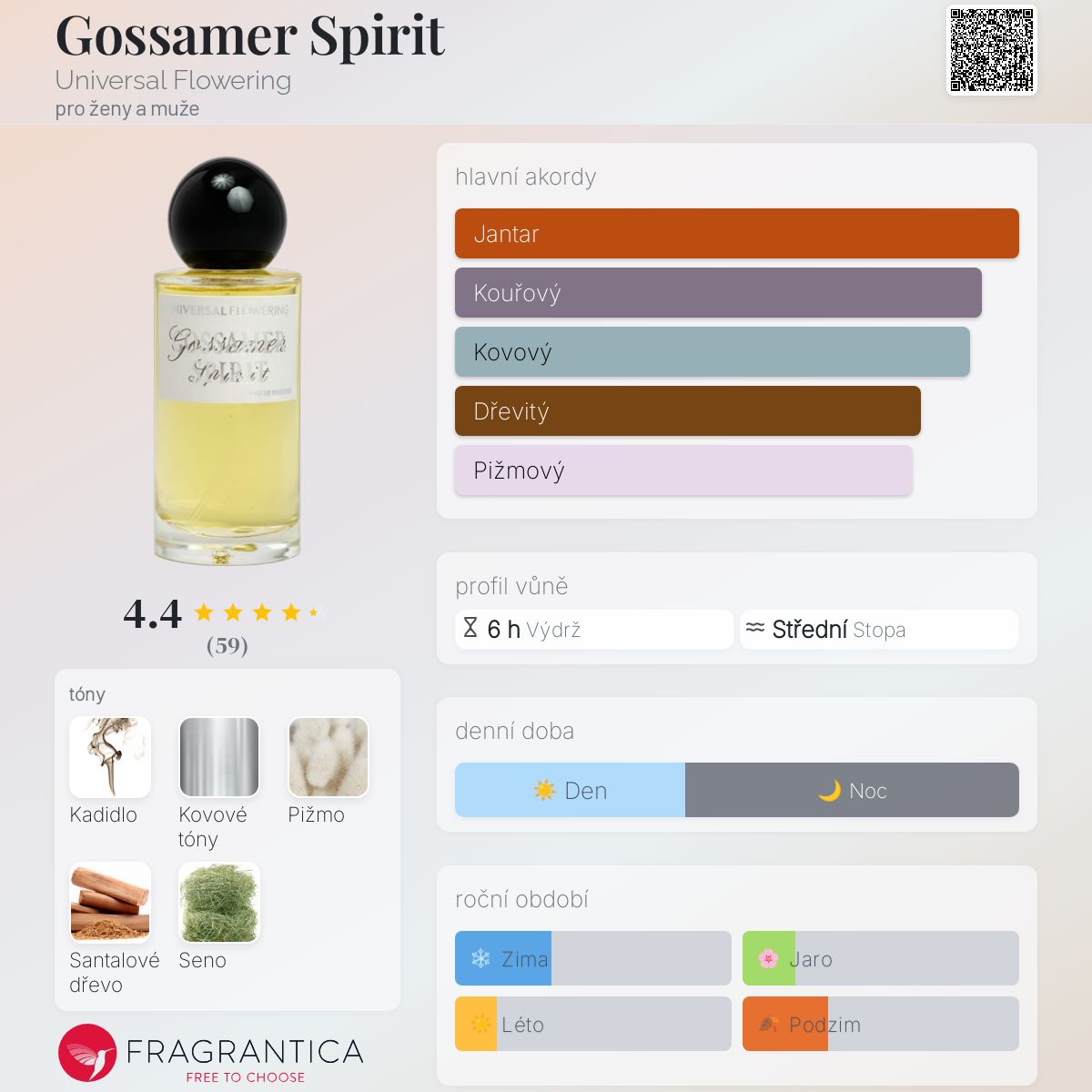 Gossamer Spirit podle Universal Flowering je Orientální Woody vůně pro ženy a muže. Gossamer Spirit byl/a uveden/a v roce 2021.